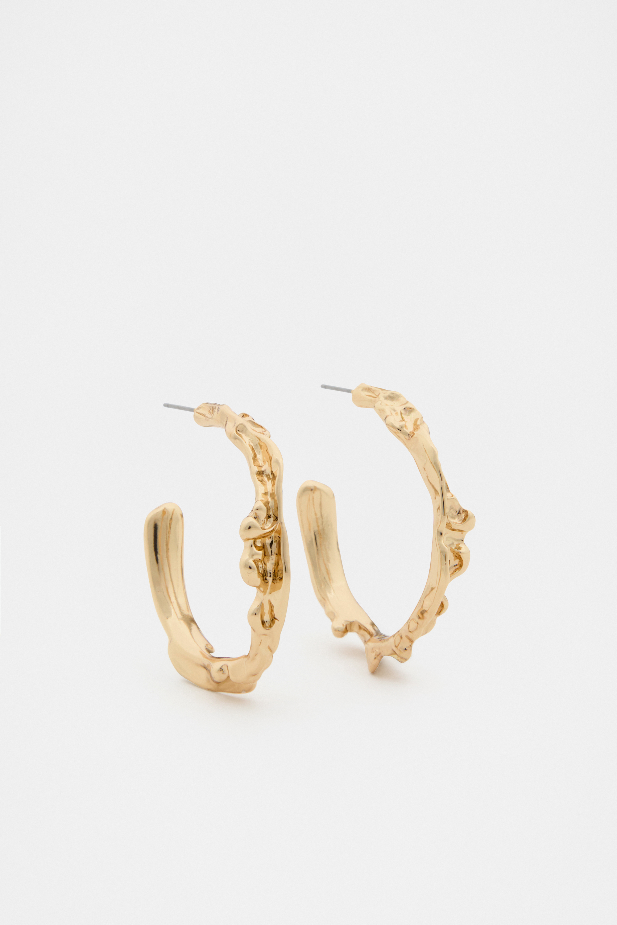 With an organic, textured design, these earrings add a sculptural moment to your look. Crafted with a gold tone finish, they're designed to style with the matching cuff or ring for a curated set, perfect for gifting.