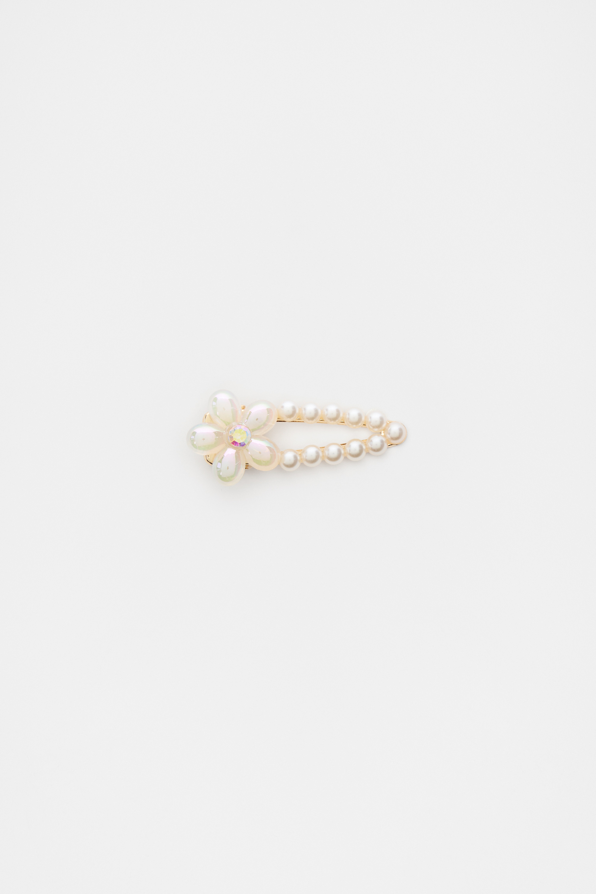 With a pearl and flower design, this duck clip is the perfect finishing touch. This product is not a toy and is not suitable for children three years and under.