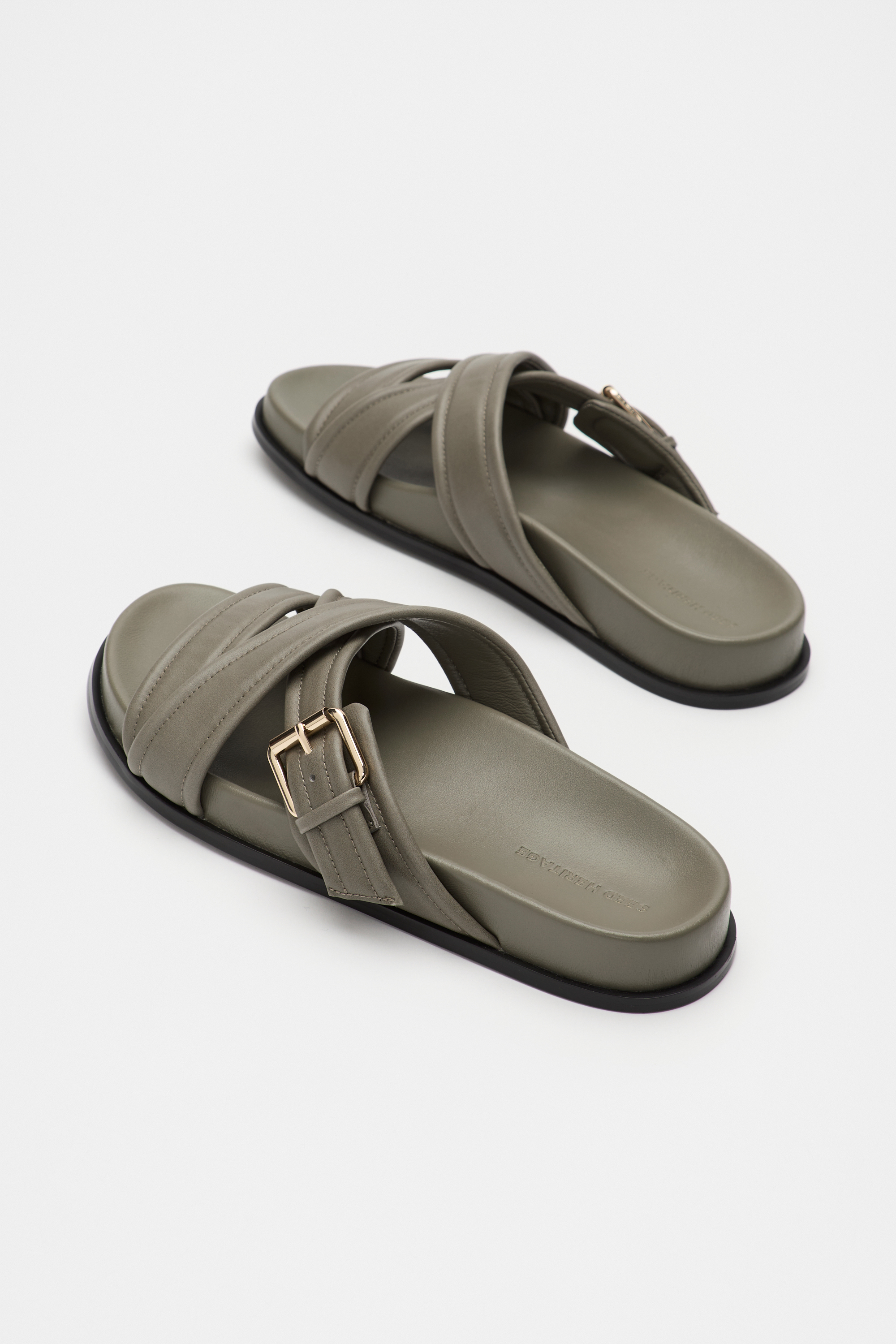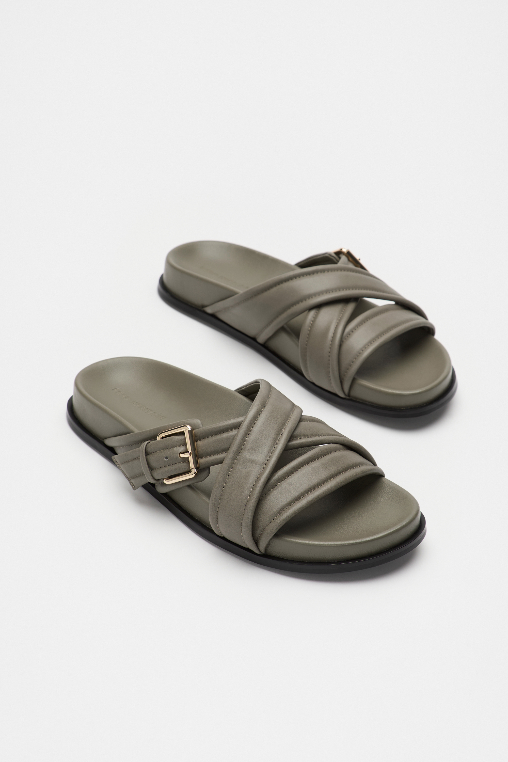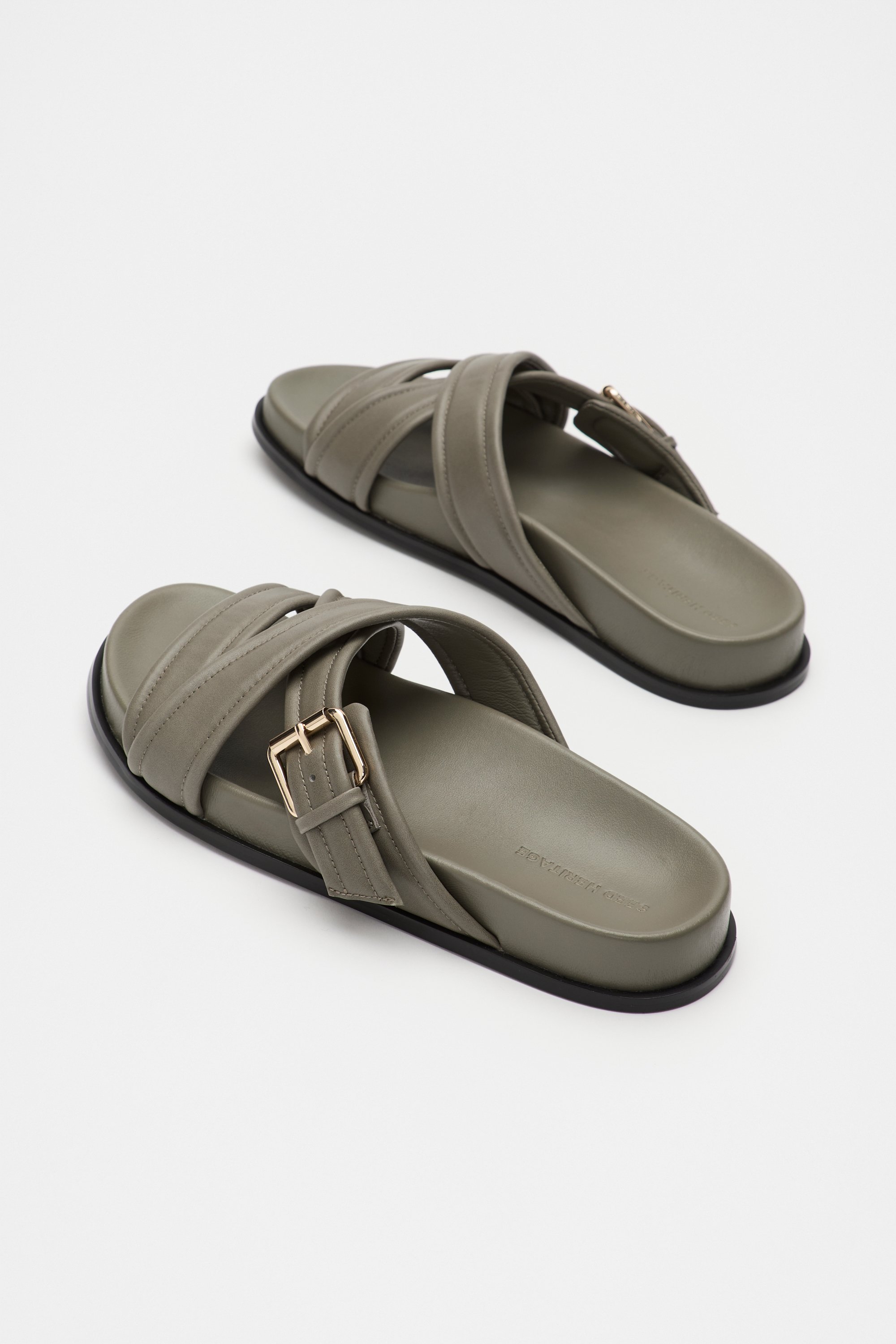 A wearable statement option in premium leather, these slides are set to be your new favourites. They feature a cross-over double strap design with a gold-toned buckle, and a comfortable moulded footbed.