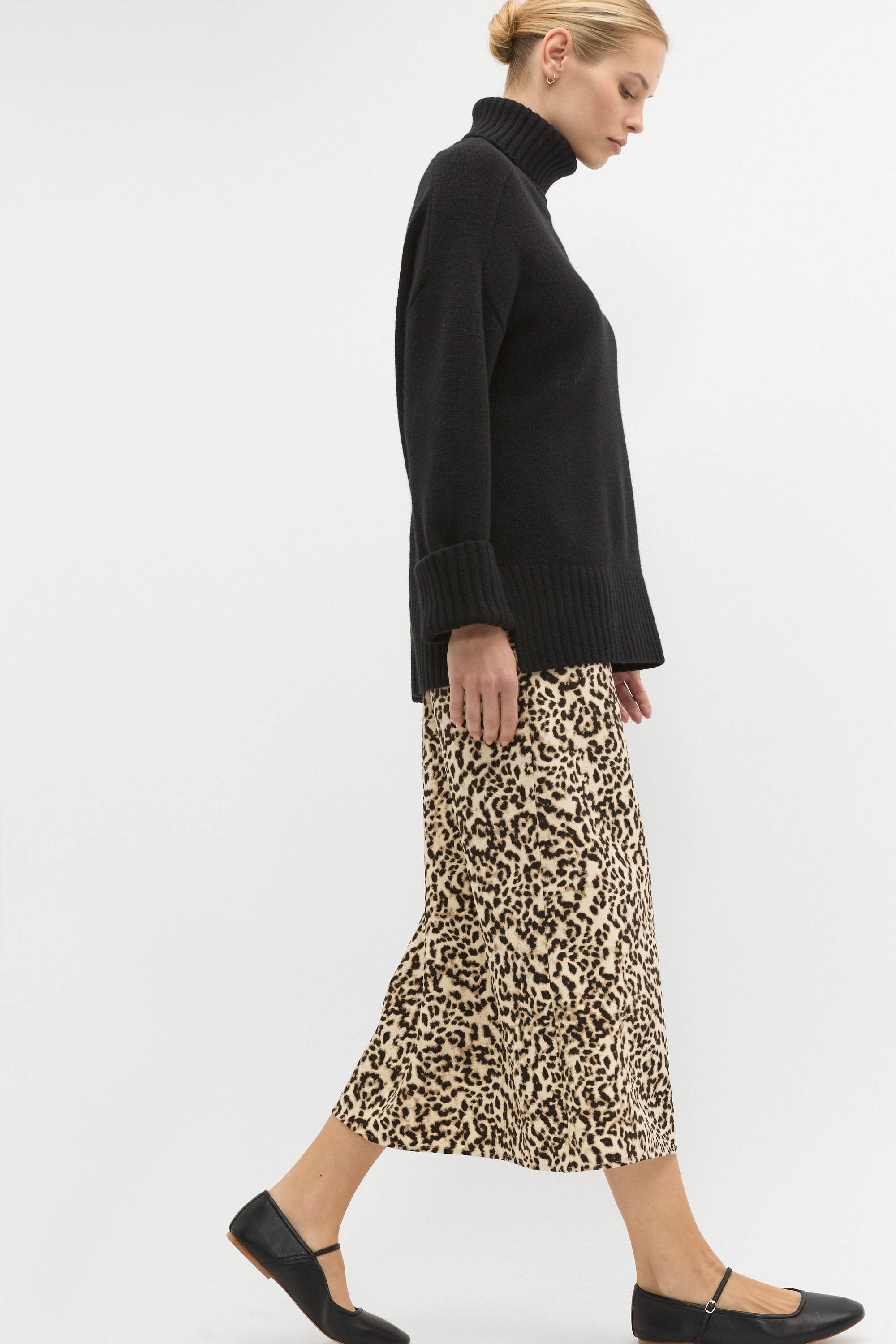 Add a statement to your winter styling with this leopard print skirt. With a smooth and sophisticated finish, it features an elasticated waistband and falls to a midi length.