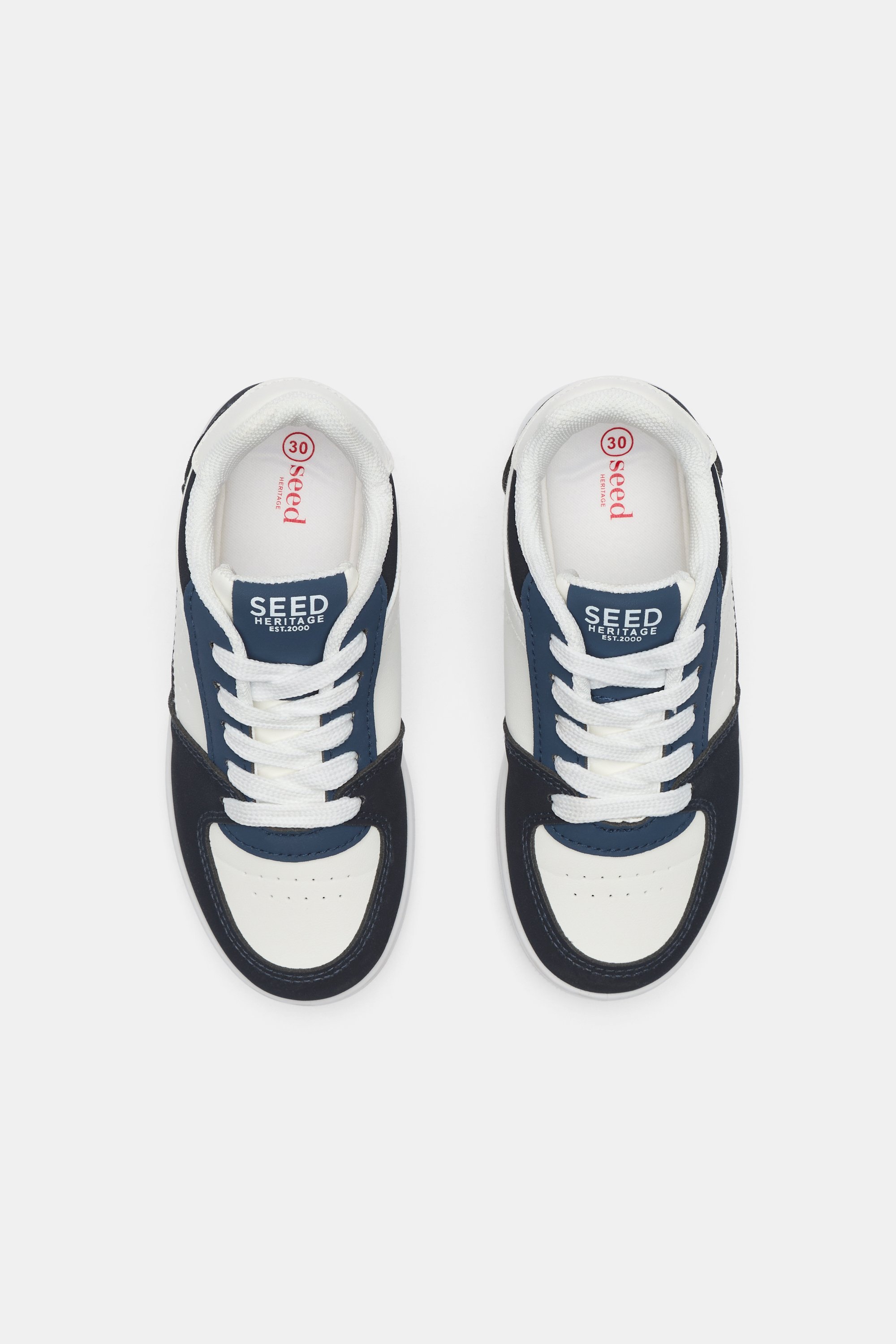 An ideal staple shoe for their wardrobe, these sneakers feature a colourblock design with faux-suede panels. Sizes 24 - 29 have hook-and-loop closures with elastic laces, and sizes 30 - 35 are lace-up.