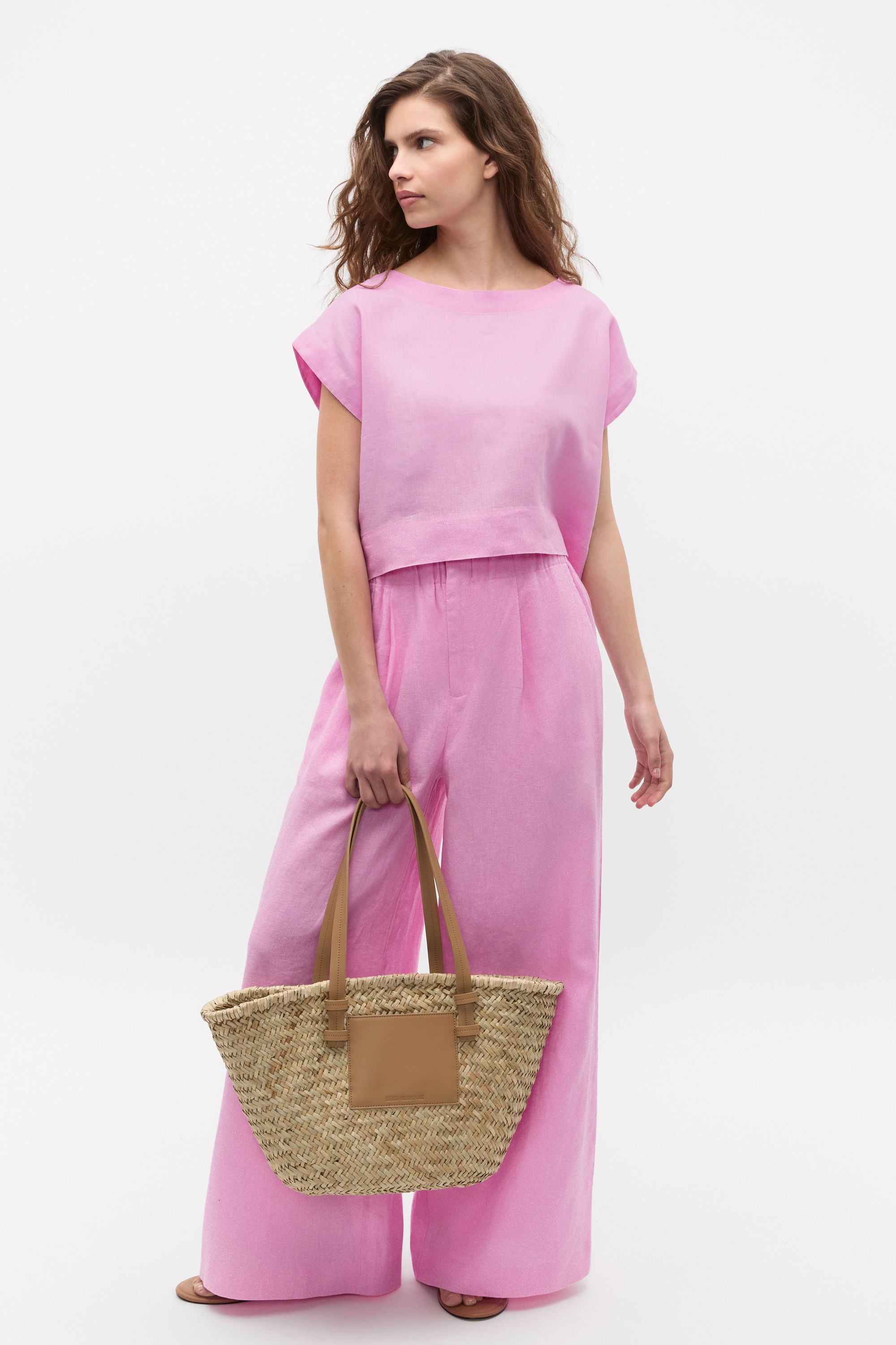 Lightweight and chic, this top is a must-have in your new season wardrobe. Crafted in premium linen, it features a round neck, a boxy fit and a cropped length. Pair with the coordinating linen pieces for effortless tonal styling.