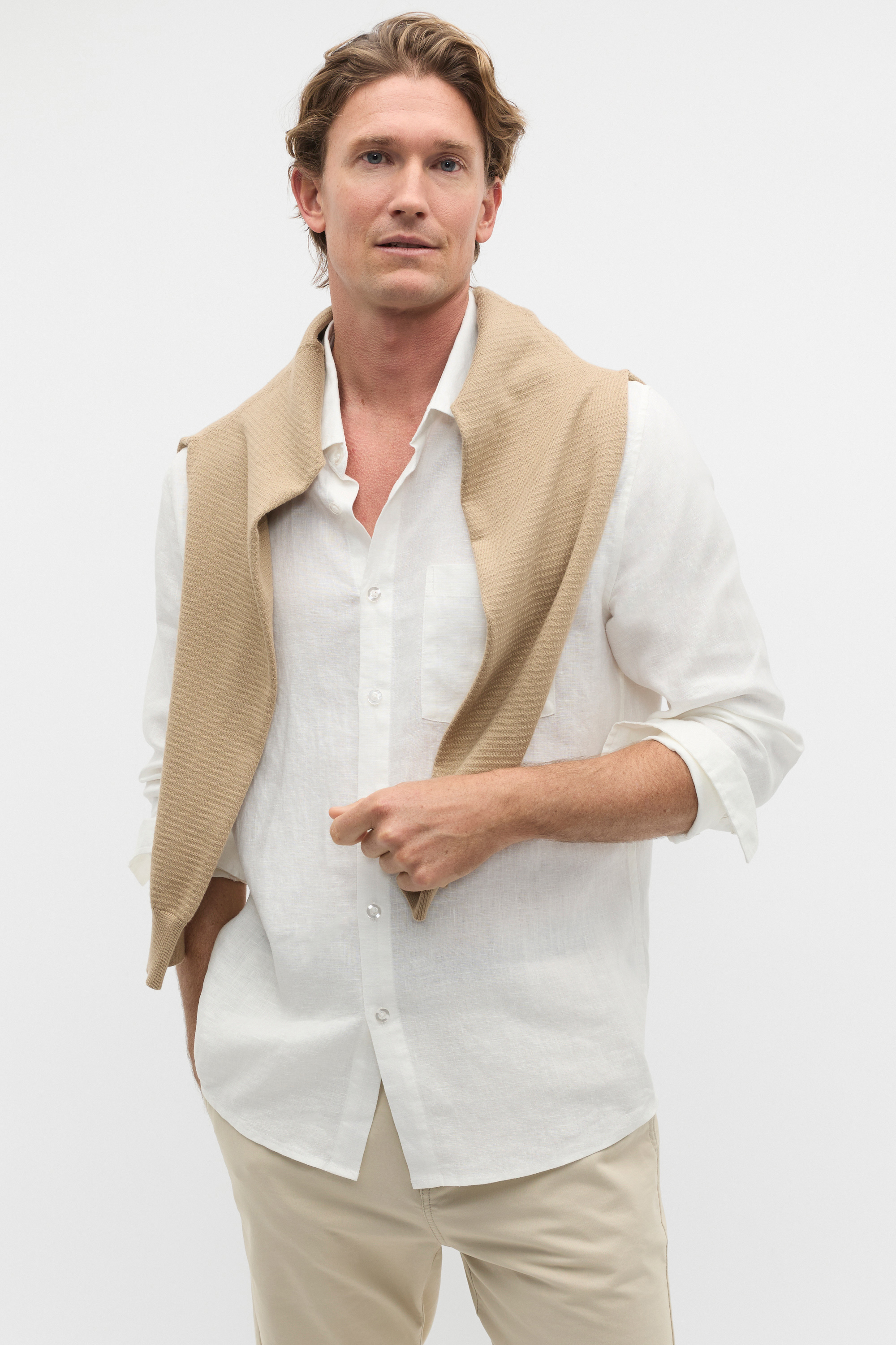Lightweight for the warmer months, this shirt is the everyday style he's been looking for. Crafted in premium linen, it features a collar, long sleeves with button cuffs, a breast pocket and a button-through front. Versatile and comfortable, he'll want one in every colour.