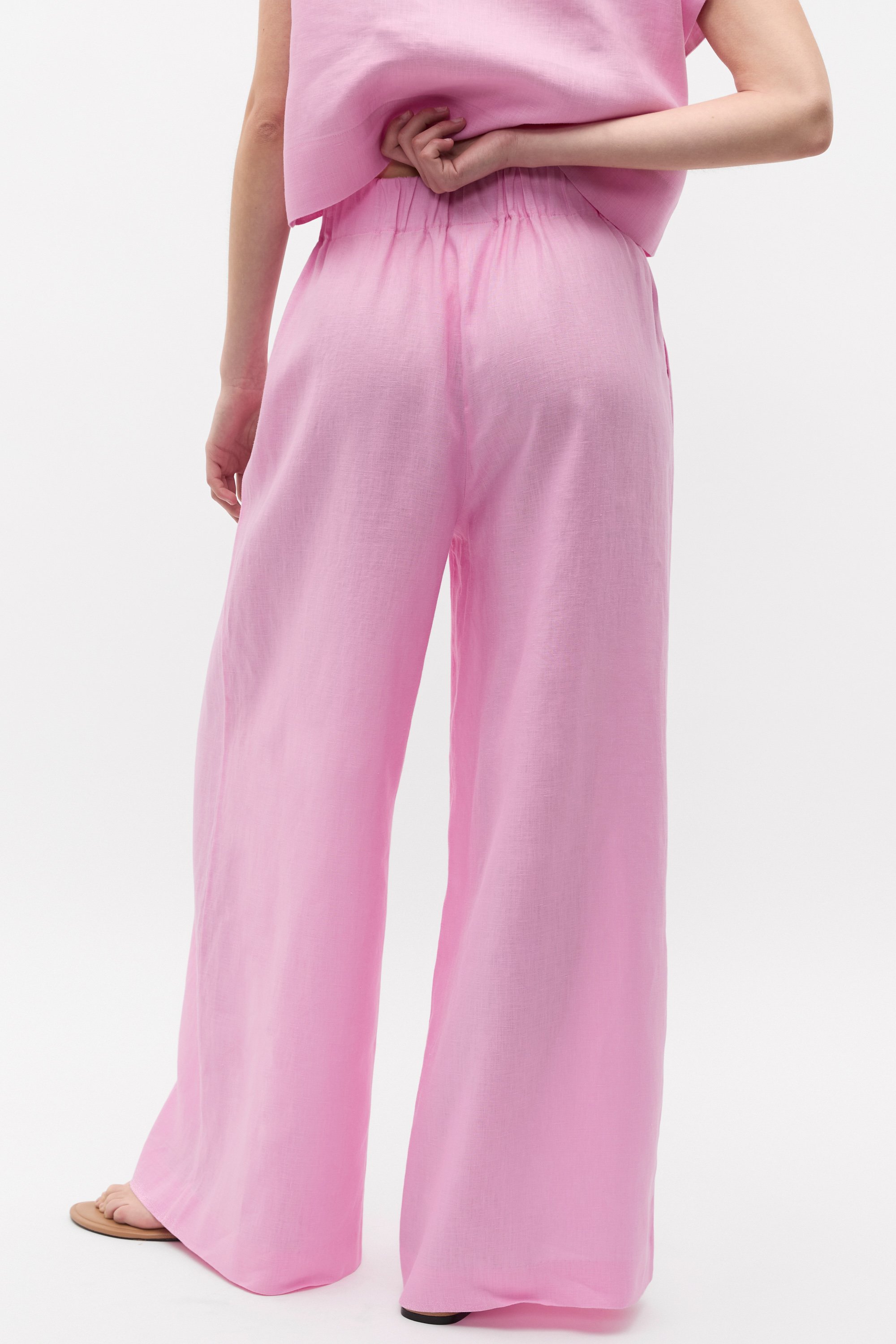 An essential pair for summer styling, these palazzo pants are a wardrobe must-have. Crafted in premium linen, they feature a fixed waistband with gathered details, a zip front, pockets and a flared shape through the leg. Pair with the coordinating linen styles for easy and chic tonal styling.