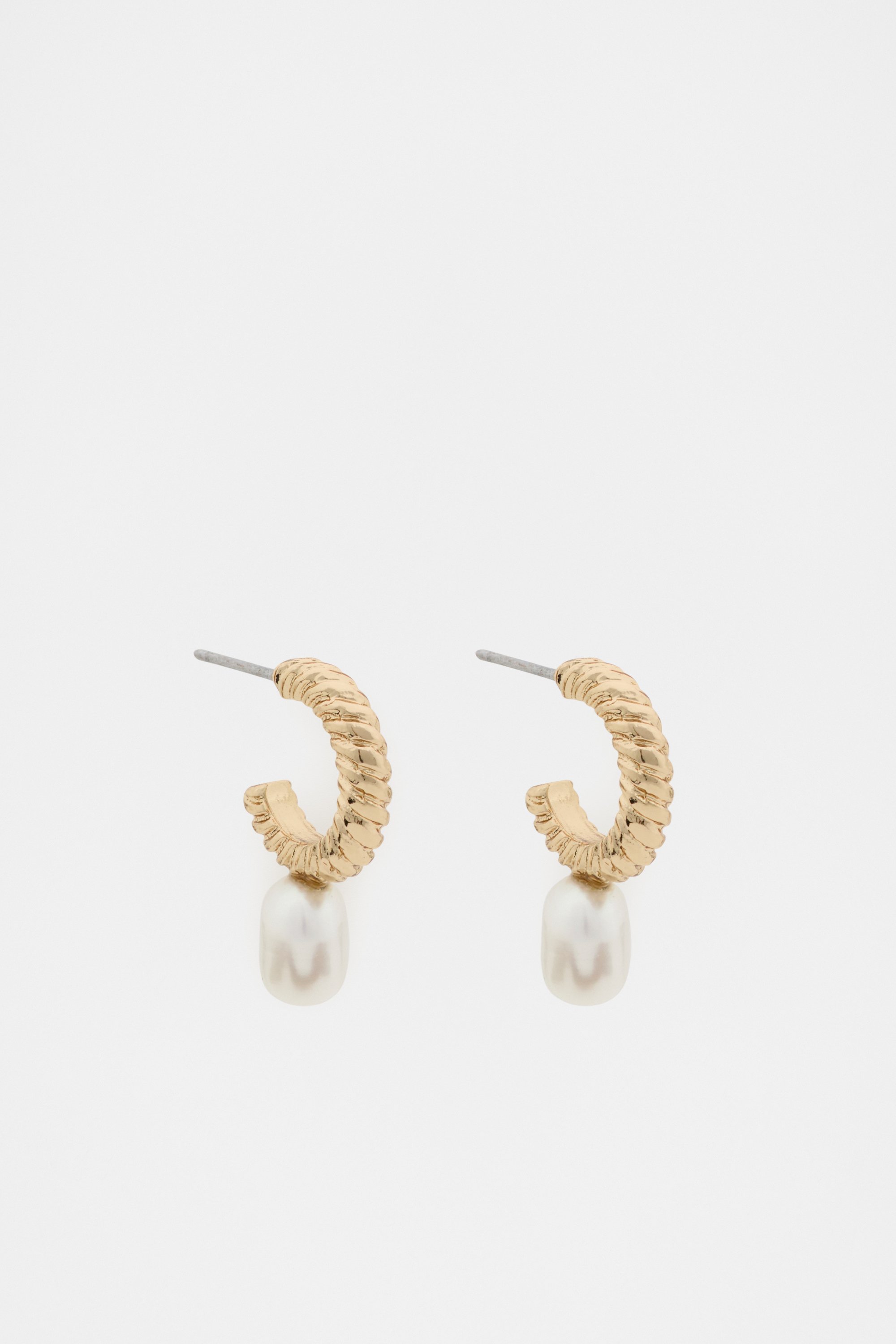 A chic style to elevate your everyday dressing, these earrings feature a small textured hoop with a pearl detail. Pair with the coordinating pearl styles for a chic curated set, perfect for gifting.