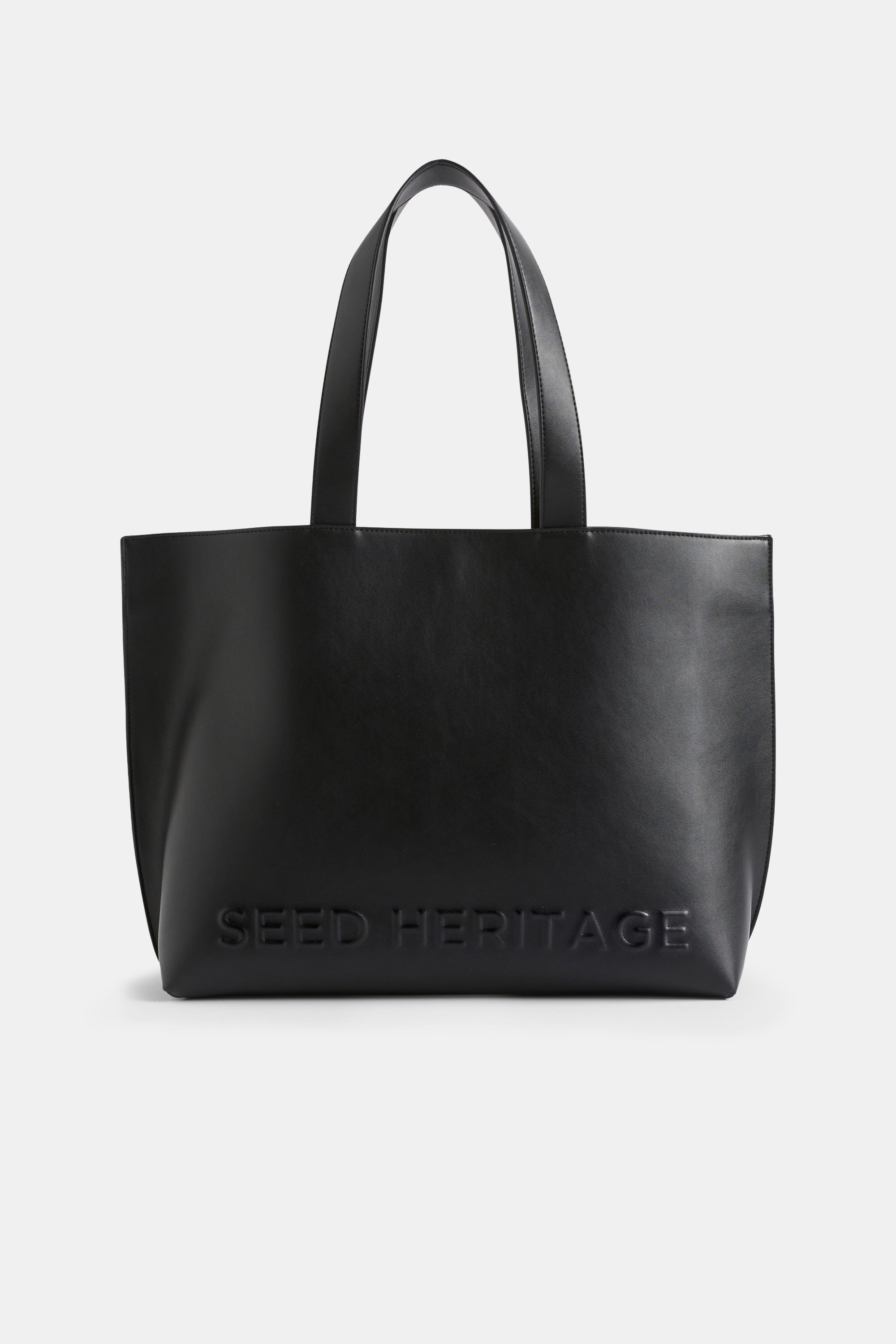 Ideal for carrying anything you might need, this generously sized tote features top handles, an internal pocket, and a Seed Heritage logo. It closes with a clasp.