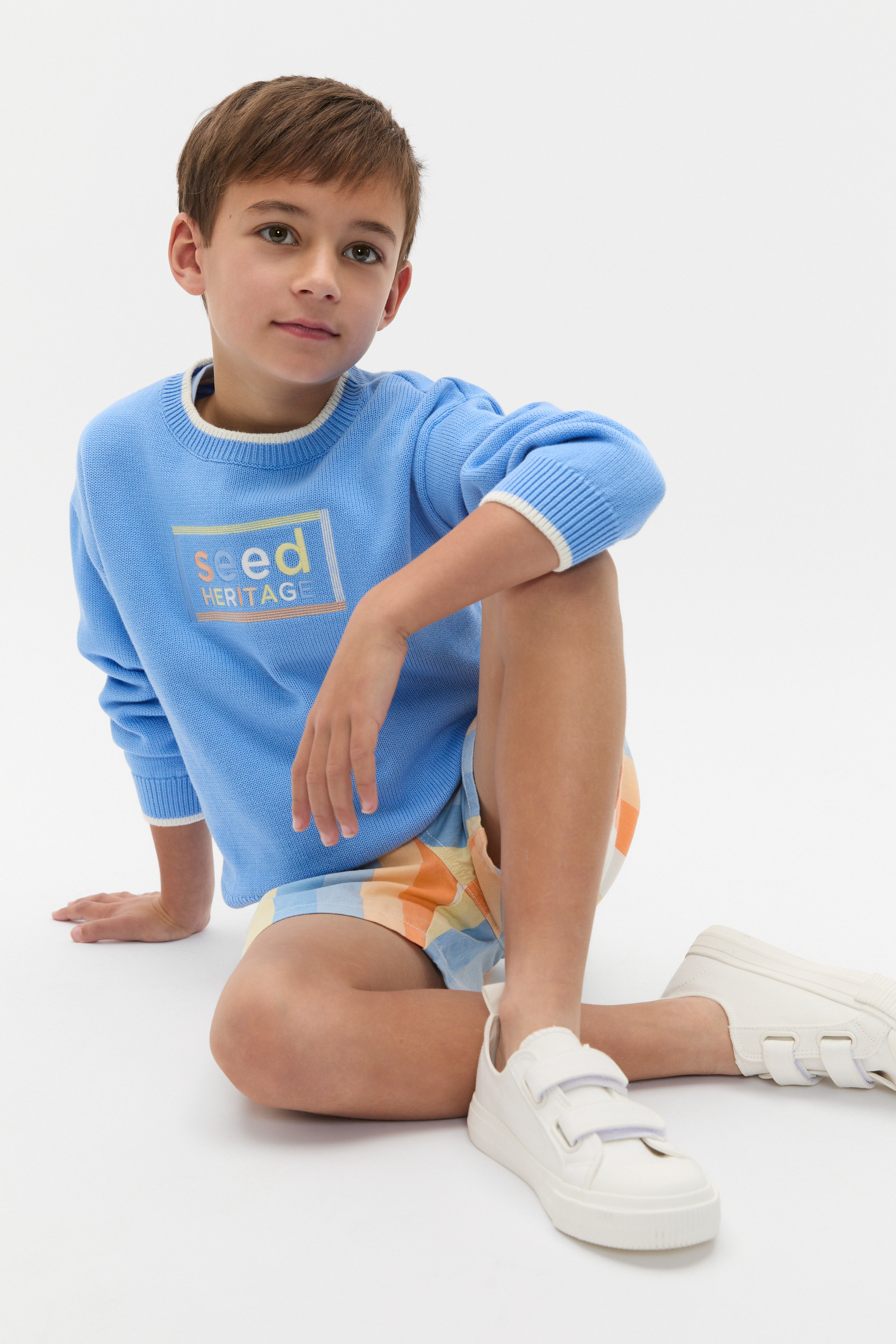 A throwback style for his everyday cool, this sweater has a bright and colourful Seed Heritage logo and a white contrast trim. Crafted in soft premium cotton, it has a knit finish and features a round neck, long sleeves and ribbed detailing at the trims.
