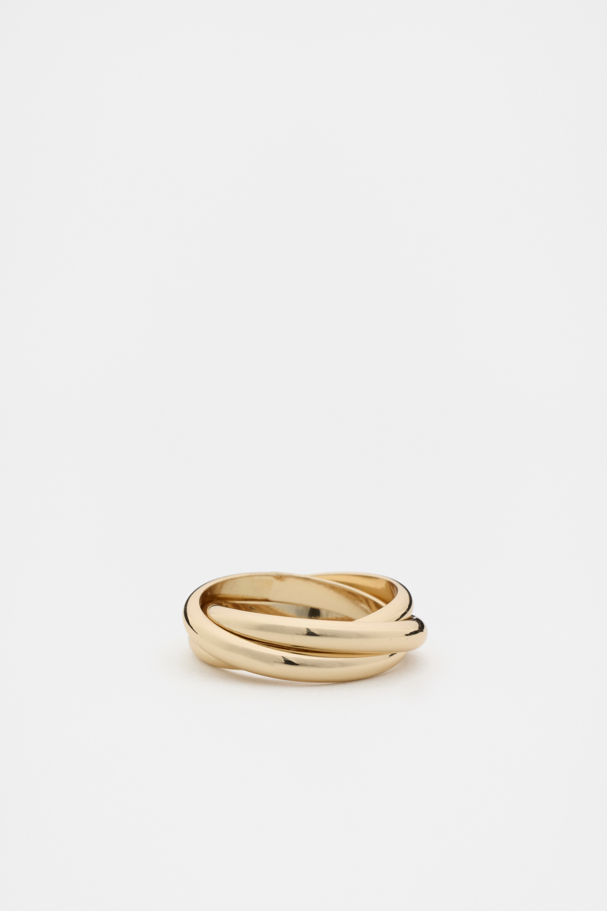 An elegant addition to your collection, this design features three interlooped rings with a high-shine finish. Style with the matching loop earrings for a curated feel. Available in silver or gold to suit any wardrobe.