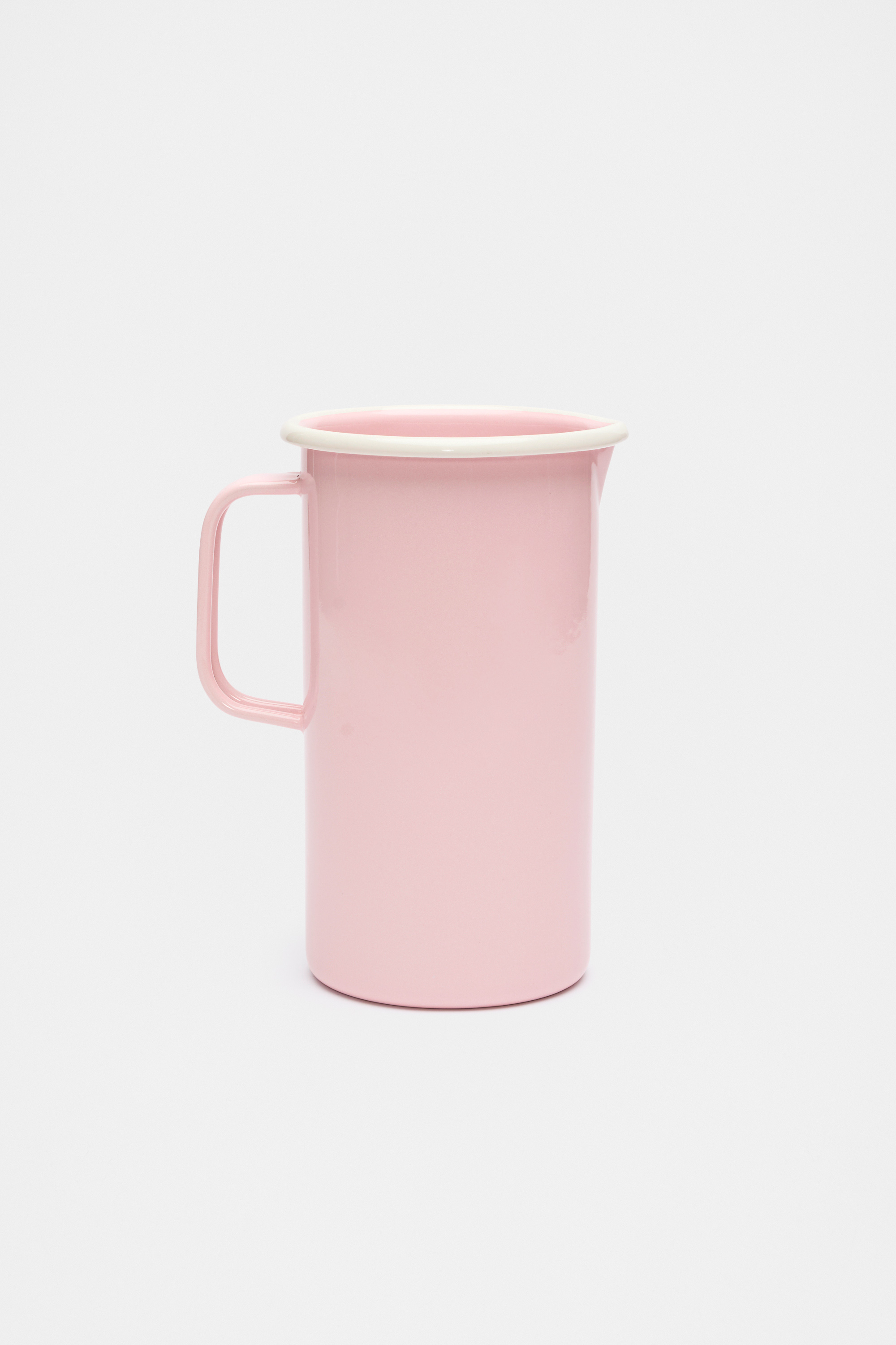 Make a statement with this enamel jug, featuring a squared handle with curved edges, a tall profile, contrast details, and a high-shine finish. Pair it with the matching tumblers, plates, and bowls for a coordinated moment.