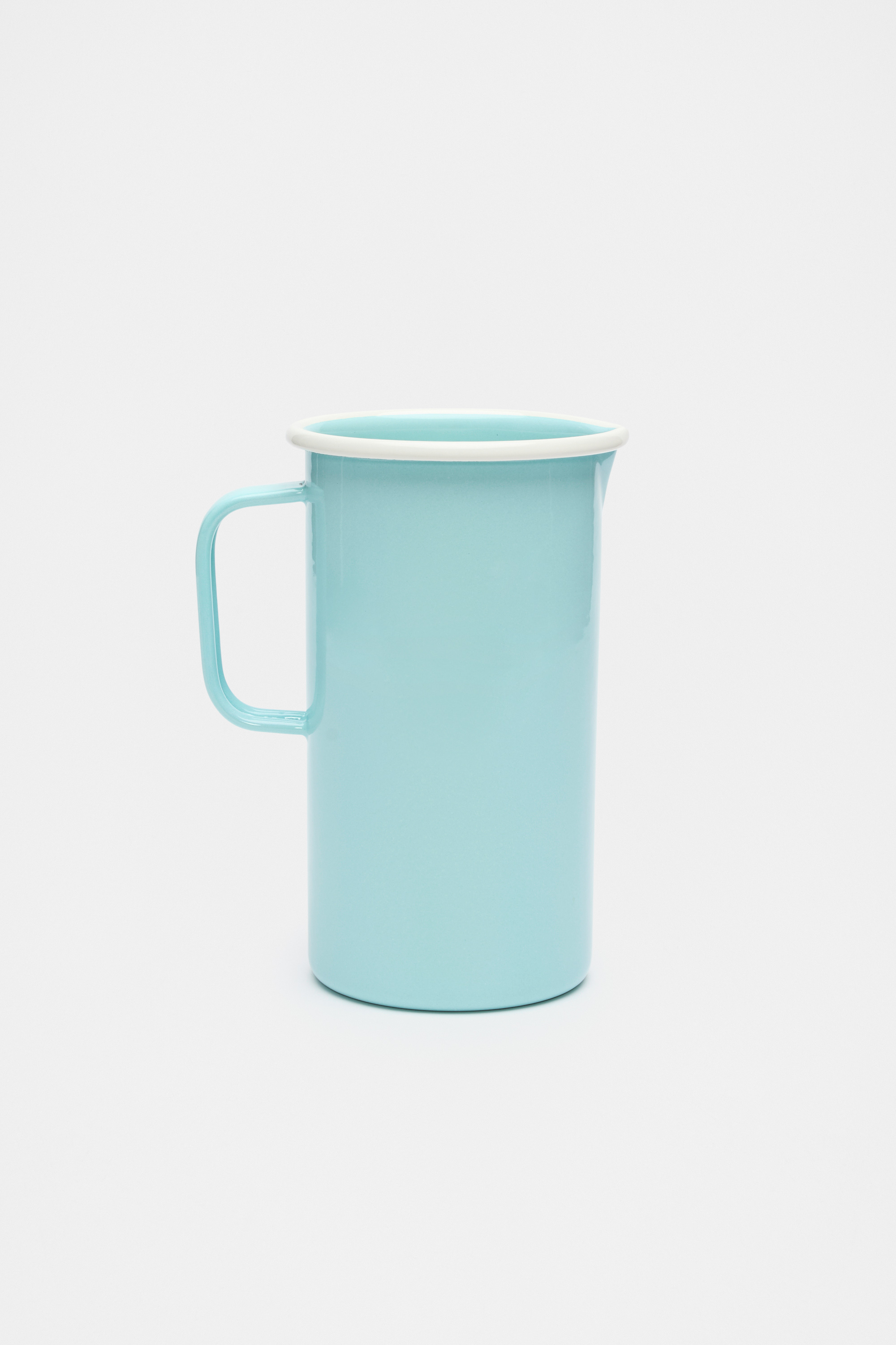 Make a statement with this enamel jug, featuring a squared handle with curved edges, a tall profile, contrast details, and a high-shine finish. Pair it with the matching tumblers, plates, and bowls for a coordinated moment.