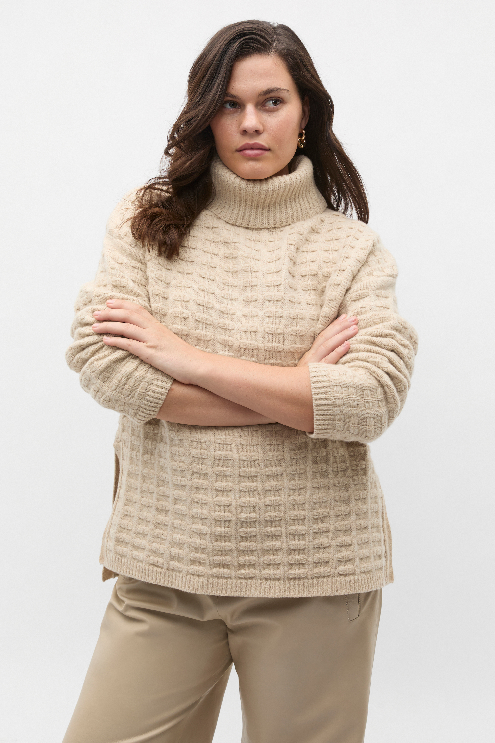 Update your winter-time styling with this roll neck sweater, perfect for keeping warm and chic. Crafted in 100% Australian Merino wool, it's designed for timeless comfort and features a roll neck, a drop shoulder with long sleeves and has a relaxed, oversized fit. With a mixed stitch effect, it has a textured finish for added interest in your style update.
