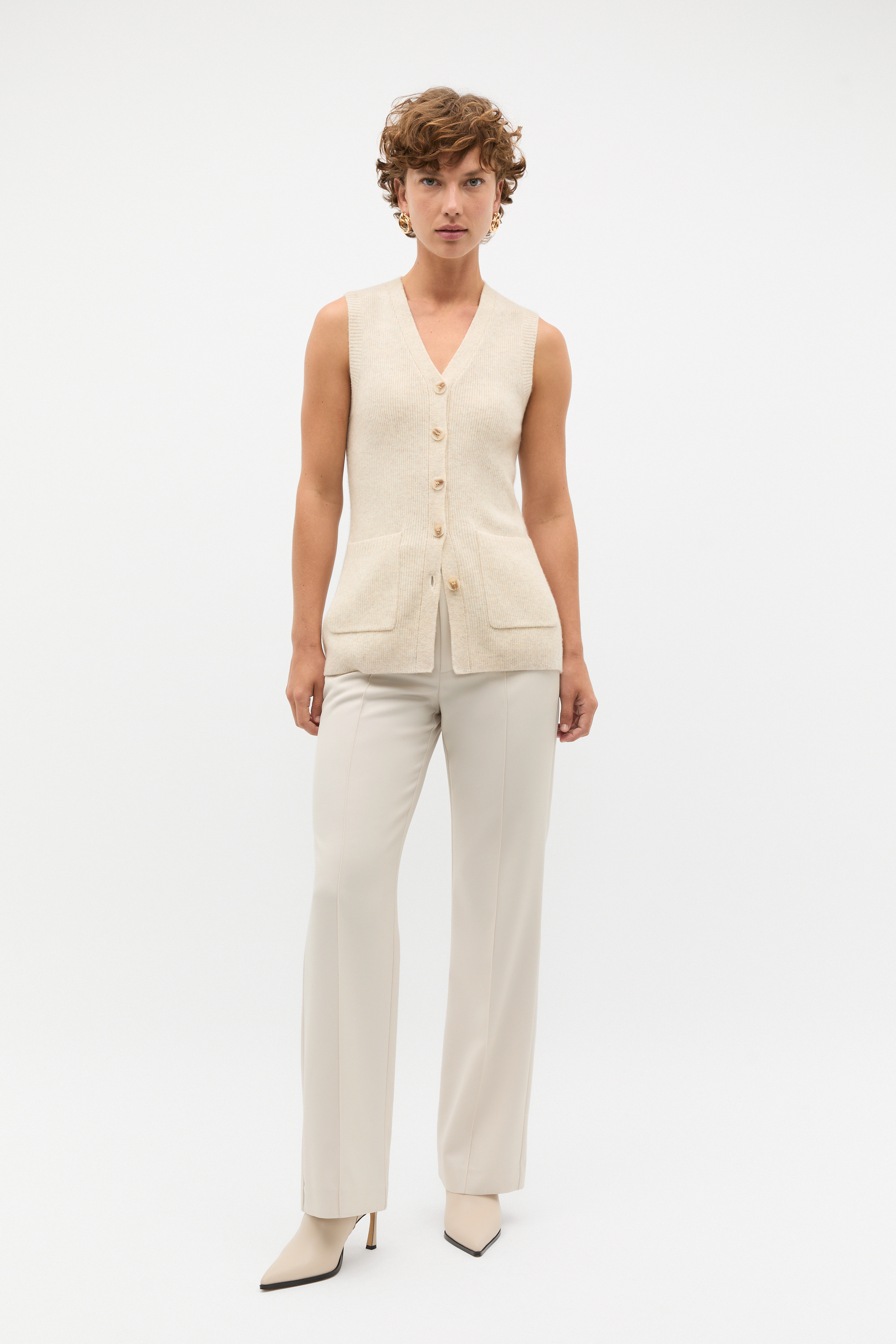 A luxe layer for everyday styling, this button vest is a versatile option. In a longline style, it features a V-neck and a button front. Crafted in premium Merino wool, it offers the ultimate in comfort.