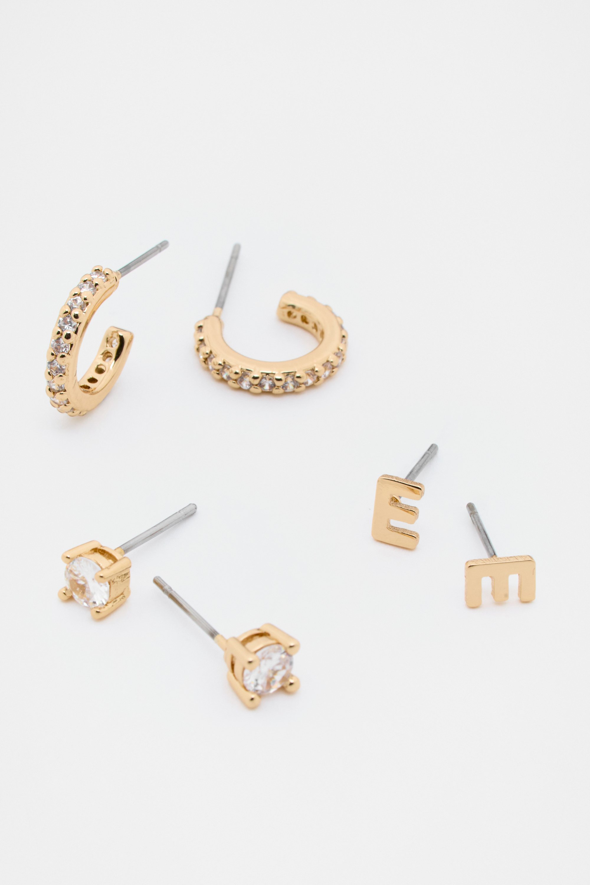 • Includes letter or heart, cubic zirconia stud and a small pave hoop