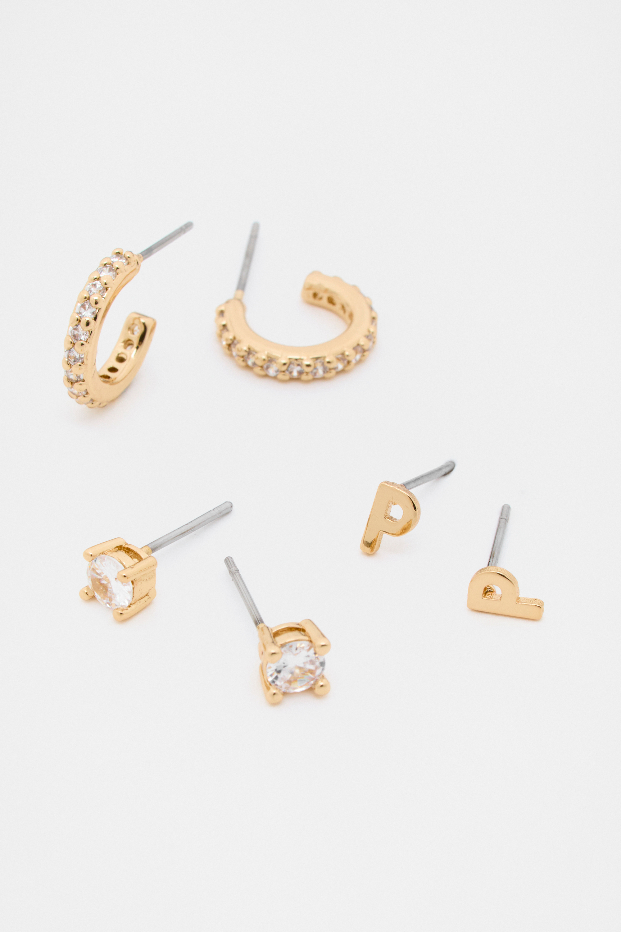 • Includes letter or heart, cubic zirconia stud and a small pave hoop