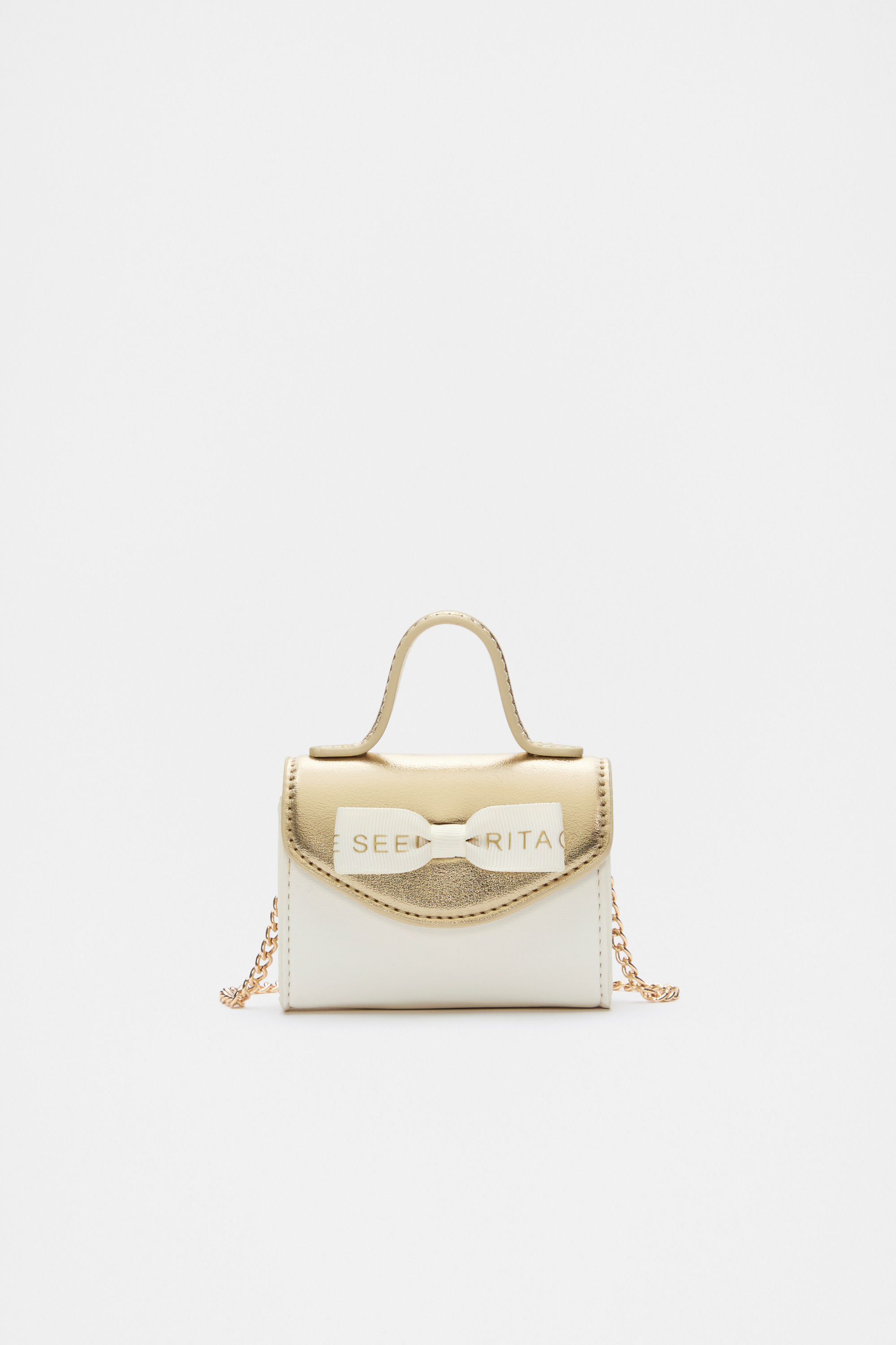 An adorable miniature design, this party bag is the perfect finishing touch for special occasions. With a metallic finish and a Seed Heritage bow, it features a magnetic closure and a gold-look crossbody chain. Designed to style with the coordinating heritage sling back shoes.