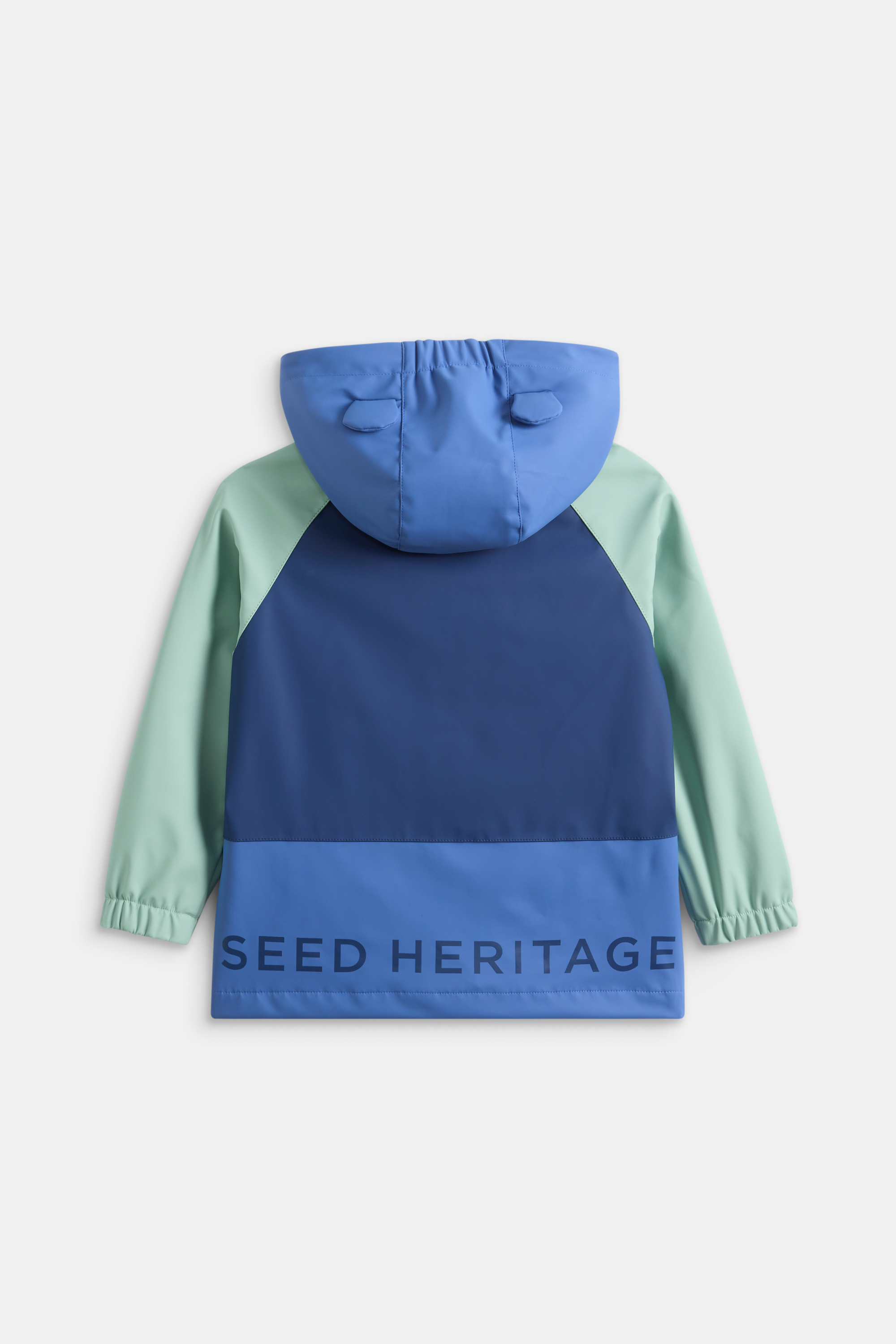 Cute and comfortable for all their wet-weather adventures, this raincoat is a must-have for the changing seasons. It features a hood with teddy ears, concealed hook-and-loop placket, elasticated cuffs and a colourblock design. It's detailed with a Seed Heritage logo and two front pockets. Pair with the matching overalls for the perfect rainy day set.