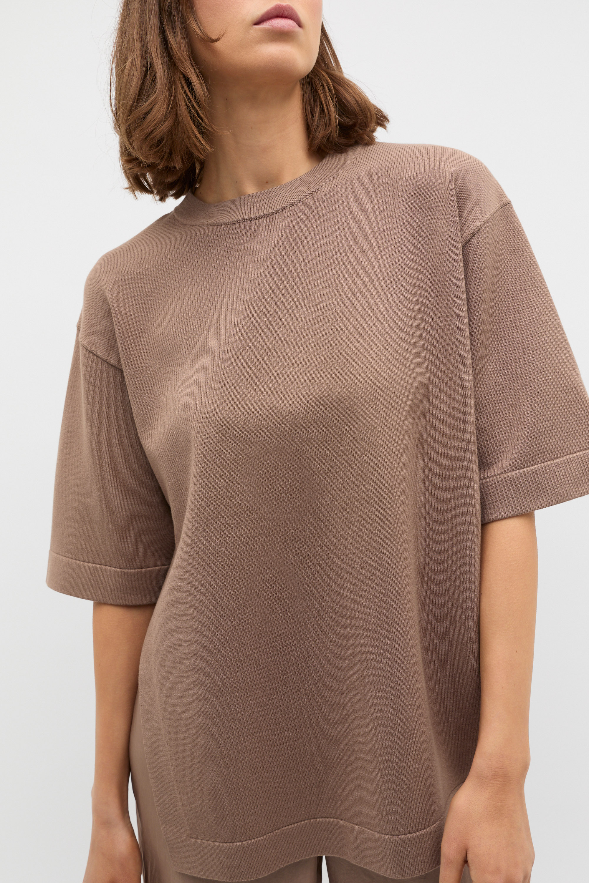 Ideal for everyday wear, this top elevates your casual wardrobe. Crafted in a lightweight blend, it features a round neck, short sleeves and a comfortable oversized fit. It also features side splits for added movement.