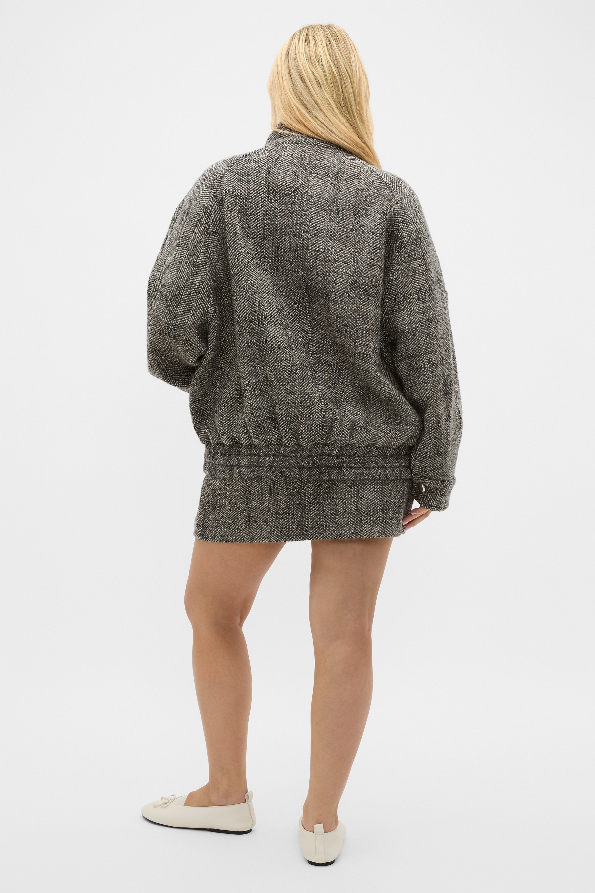 Designed for everyday wear, this textured jacket is a smart option to introduce into you casual wardrobe. Crafted in soft blend containing wool with a textured finish and a weighty feel, it features a high collar with a button-up detail, a zip front, long sleeves and adjustable button cuffs. With an oversized shape, it has a zip front and has two angled pockets. Pair with the textured skirt for a chic coordinated set.