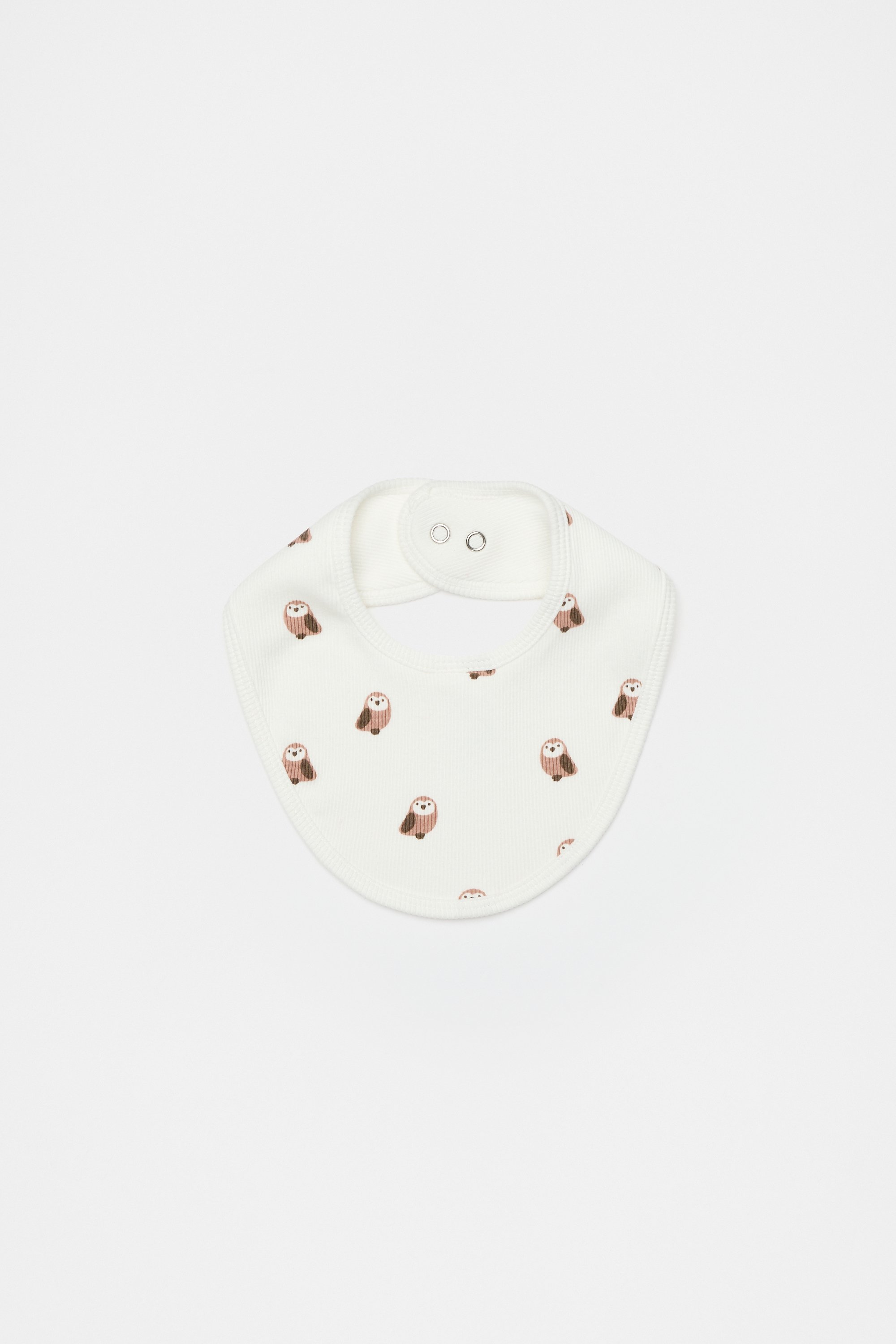 Featuring the sweetest little owl print, this classic bib is crafted from a soft stretch cotton blend. It features snap fastenings for an adjustable fit. Pair with the bodysuit for the cutest matching set or for the perfect gift.