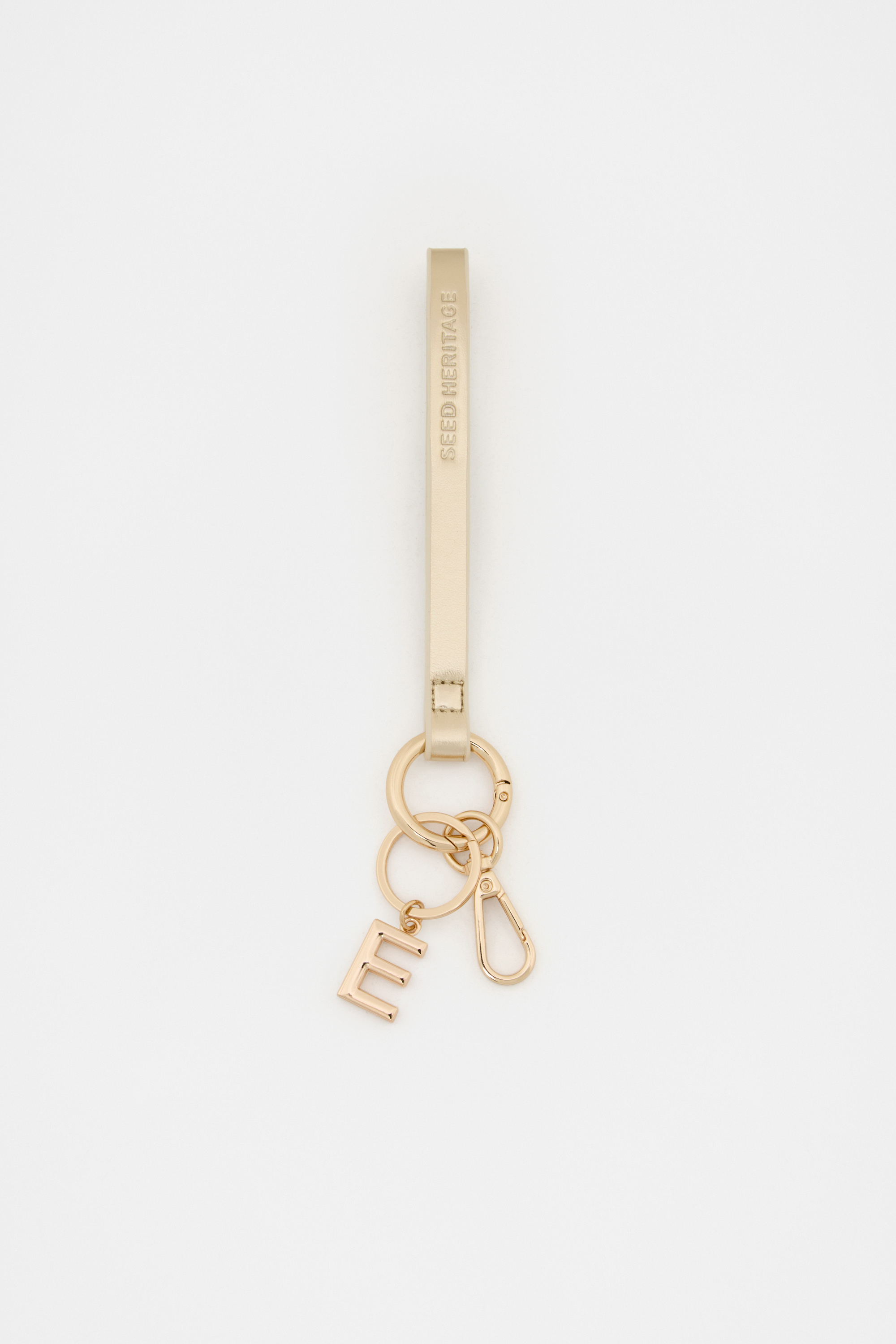 Add a personalised touch to your essentials with this key holder, handily featuring a wrist strap for easy carry. It features gold-tone hardware, Seed logo and an initial or heart charm. Attaches with a parrot clasp.