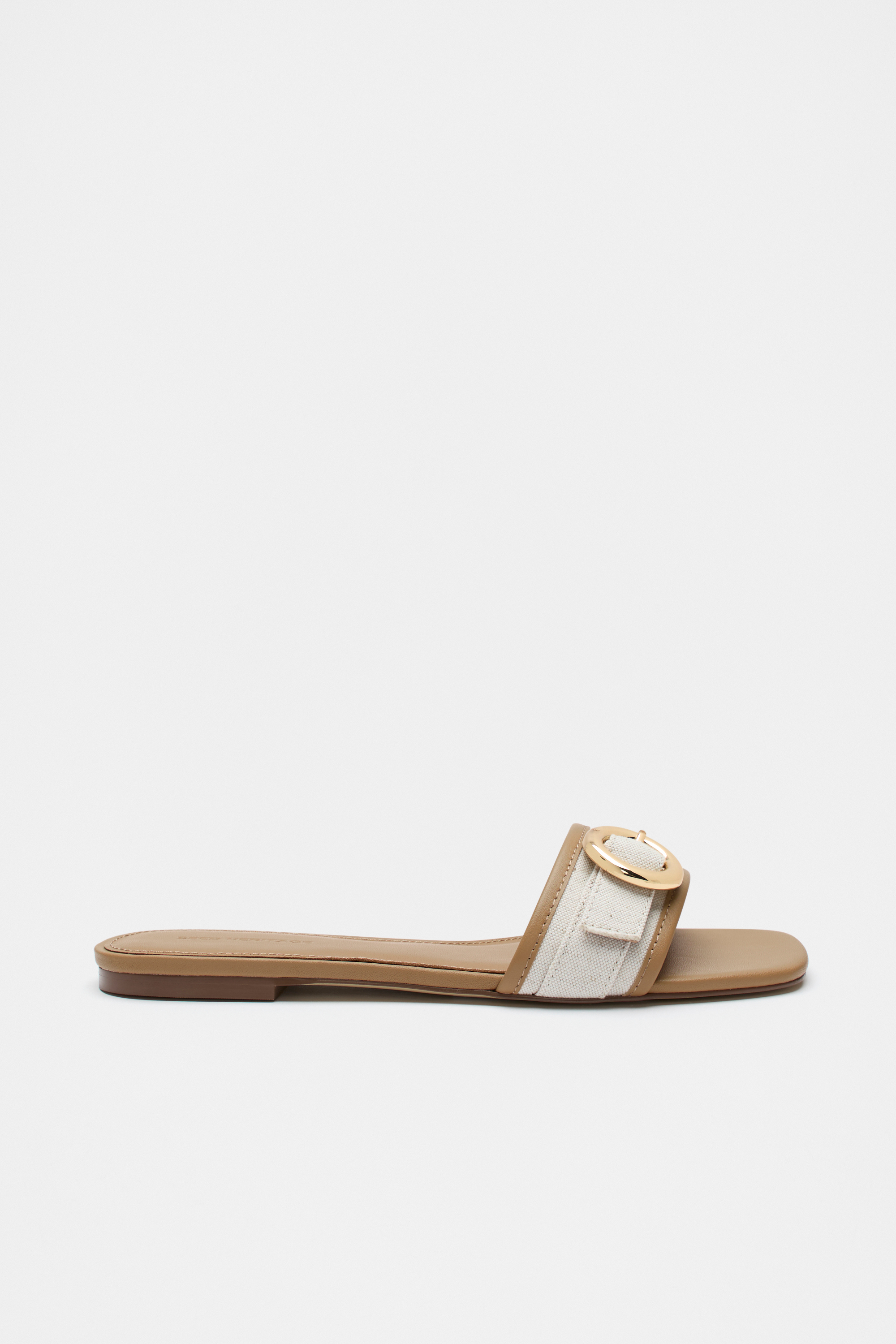 A sophisticated, effortless design, these slides are sure to be your new go-to, the perfect finishing touch to your summer outfits. They feature a flat profile in a classic single-strap slide design with an accentuated buckle detail.