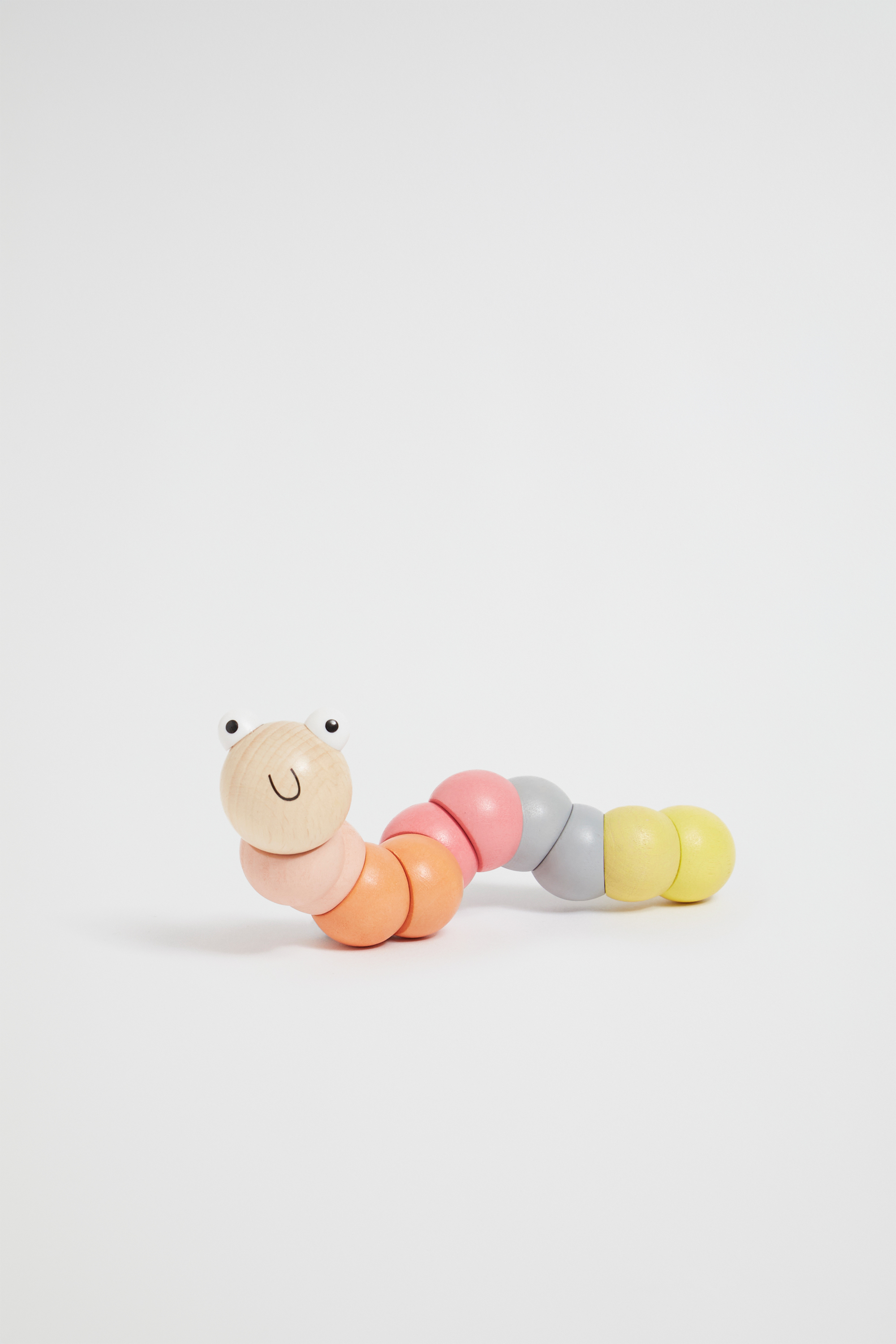 Made from smooth wood decorated in pastel colours, this bendy, smiley worm is sure to your little one's new favourite tummy time companion.