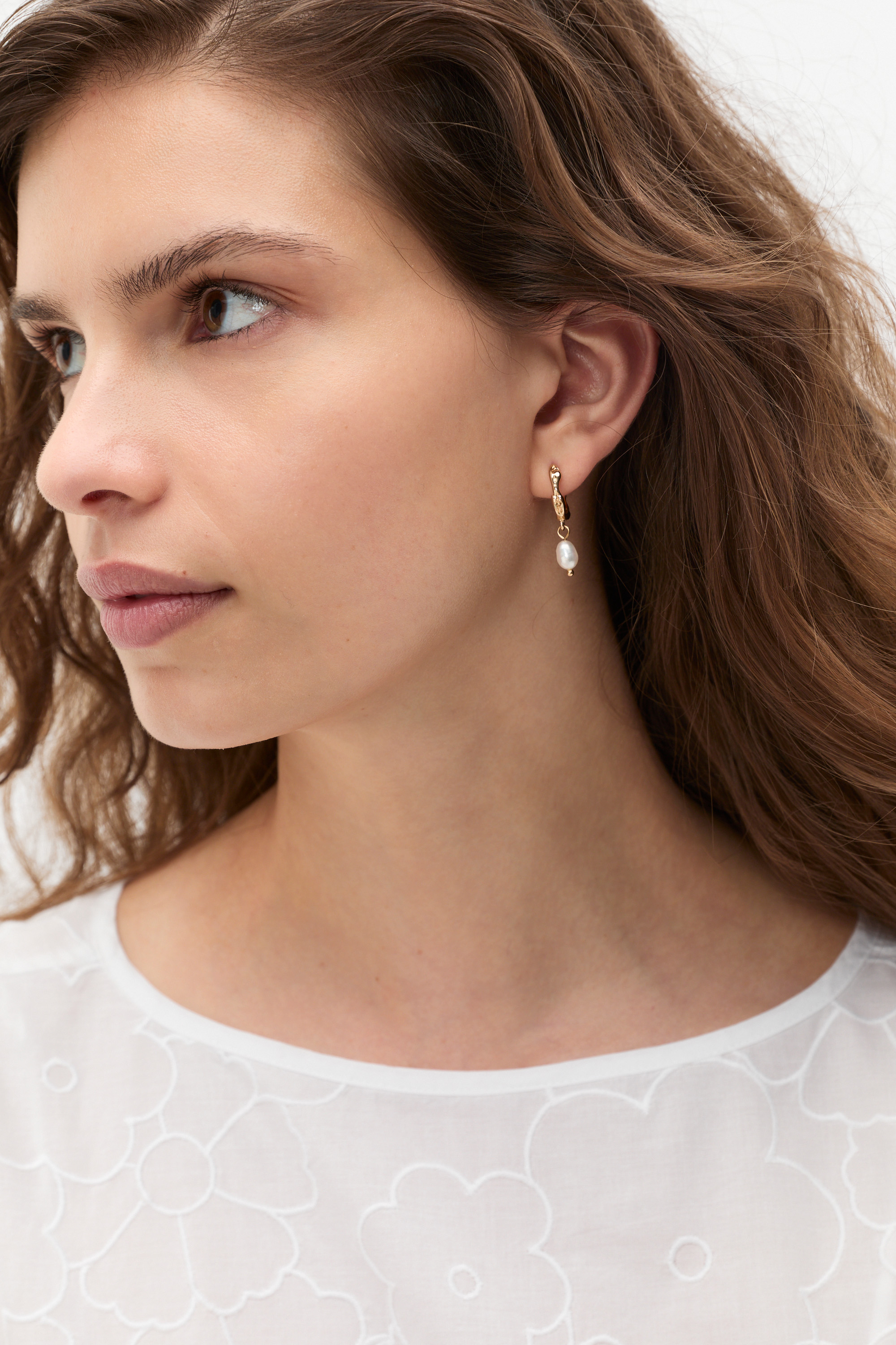 Add some shine to your everyday look with this handy set of pearl earrings. Set includes two pairs of studs and one small pair of hoops with small and delicate pearl designs.