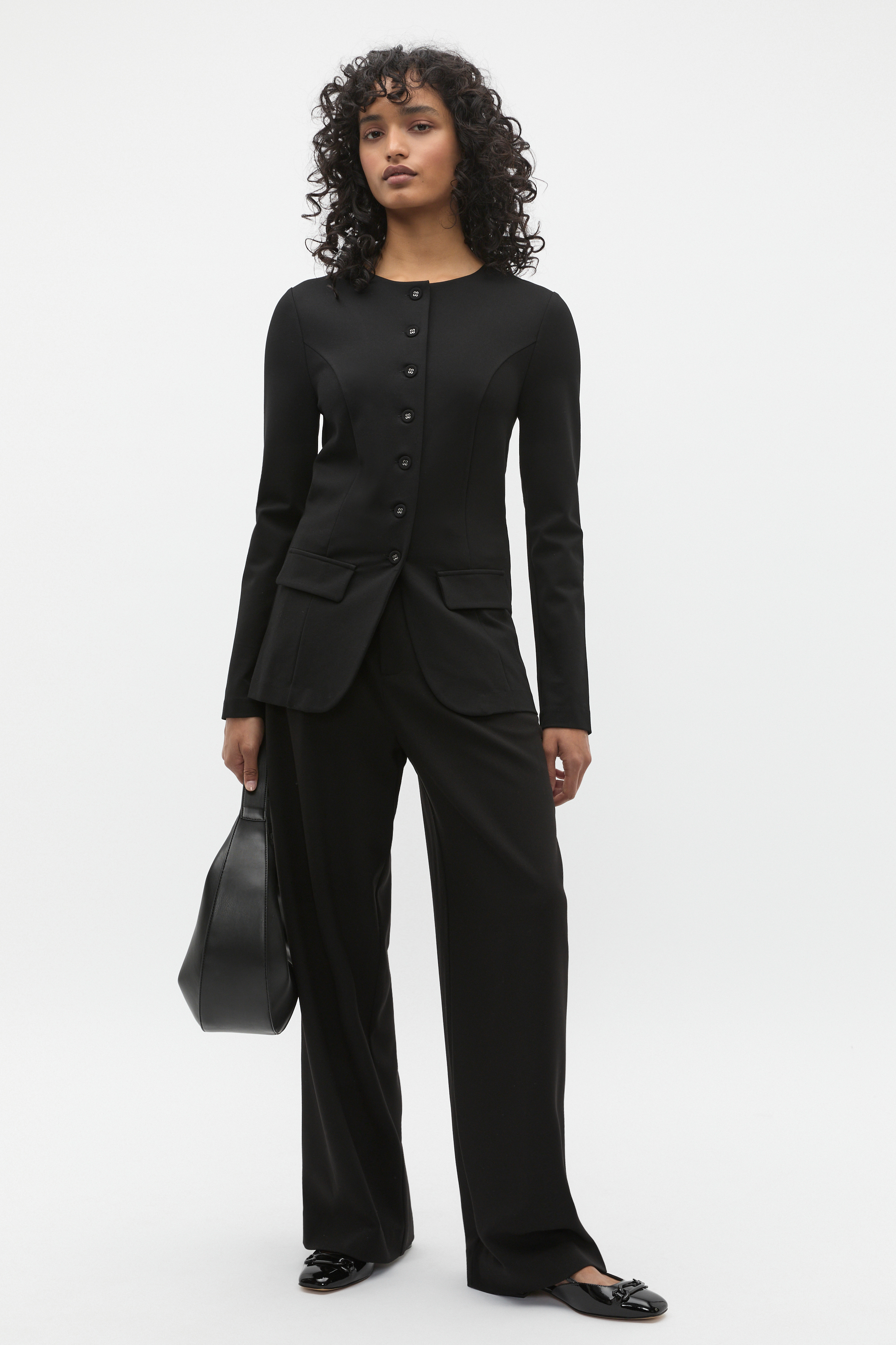 Designed to elevate your workwear or evening looks, this top is finished in a smooth and sleek ponte with a little stretch. It features a round neck, long sleeves and a button-through front. It's detailed with decorative pockets and a tailored finish in a longline cut.