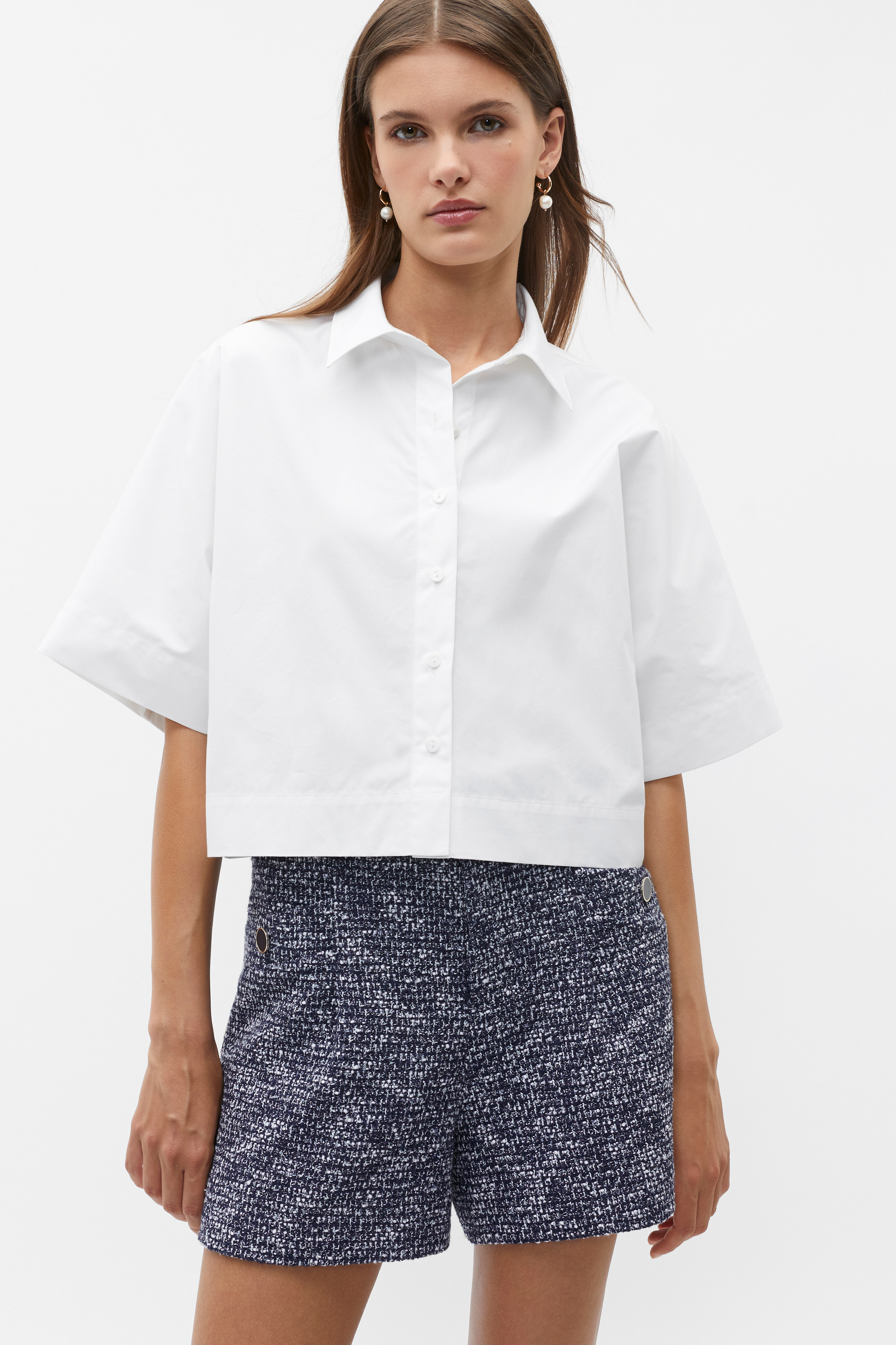 Add a touch of sophistication to your summer wardrobe with this collared shirt, a modern classic. Crafted in a premium cotton, it features a collar, short sleeves, a button front and a cropped length. By choosing our cotton products you're supporting our investment in Better Cotton's mission. This product was sourced via a system of mass balance and therefore may not contain Better Cotton.
