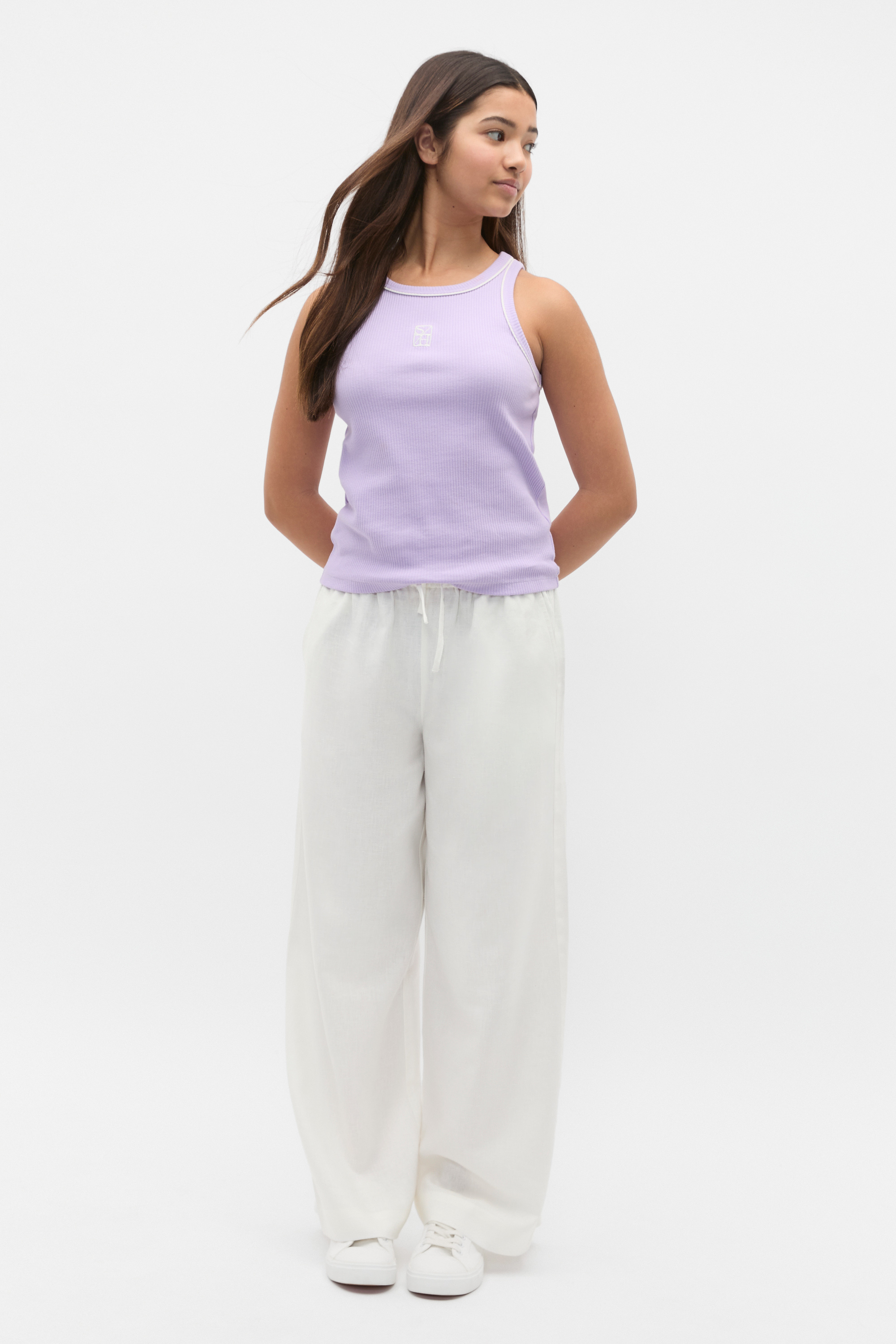 Comfortable for everyday styling, these pull-on pants are set to become her new favourite pair. Crafted in a lightweight blend containing linen, they feature an elasticated waistband with a drawstring, pockets, and a straight leg shape.