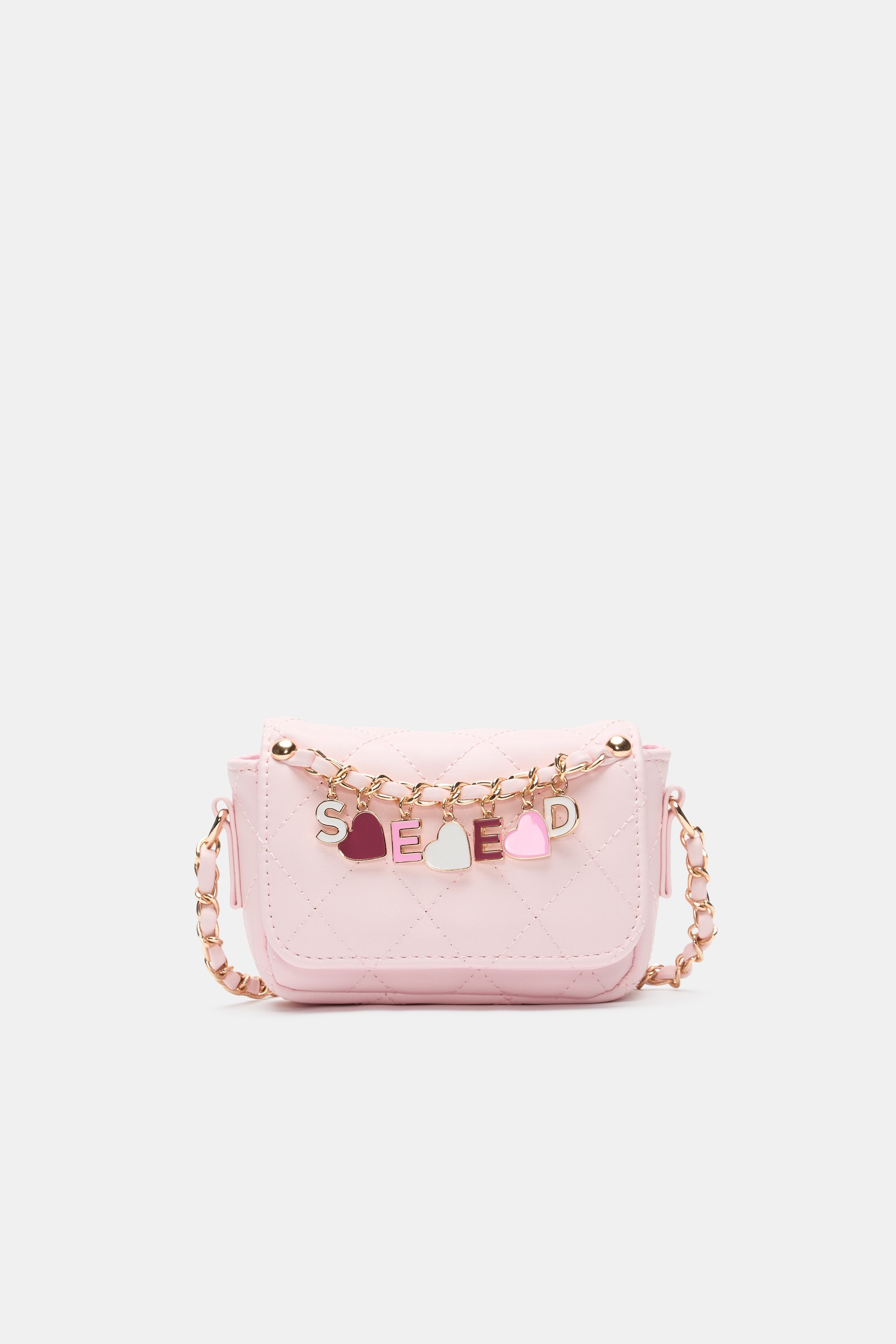 Set to be a new favourite, this bag features the sweetest design of charms of hearts and letters that spell Seed. It has a crossbody chain, a quilted design and secures with a magnetic closure.