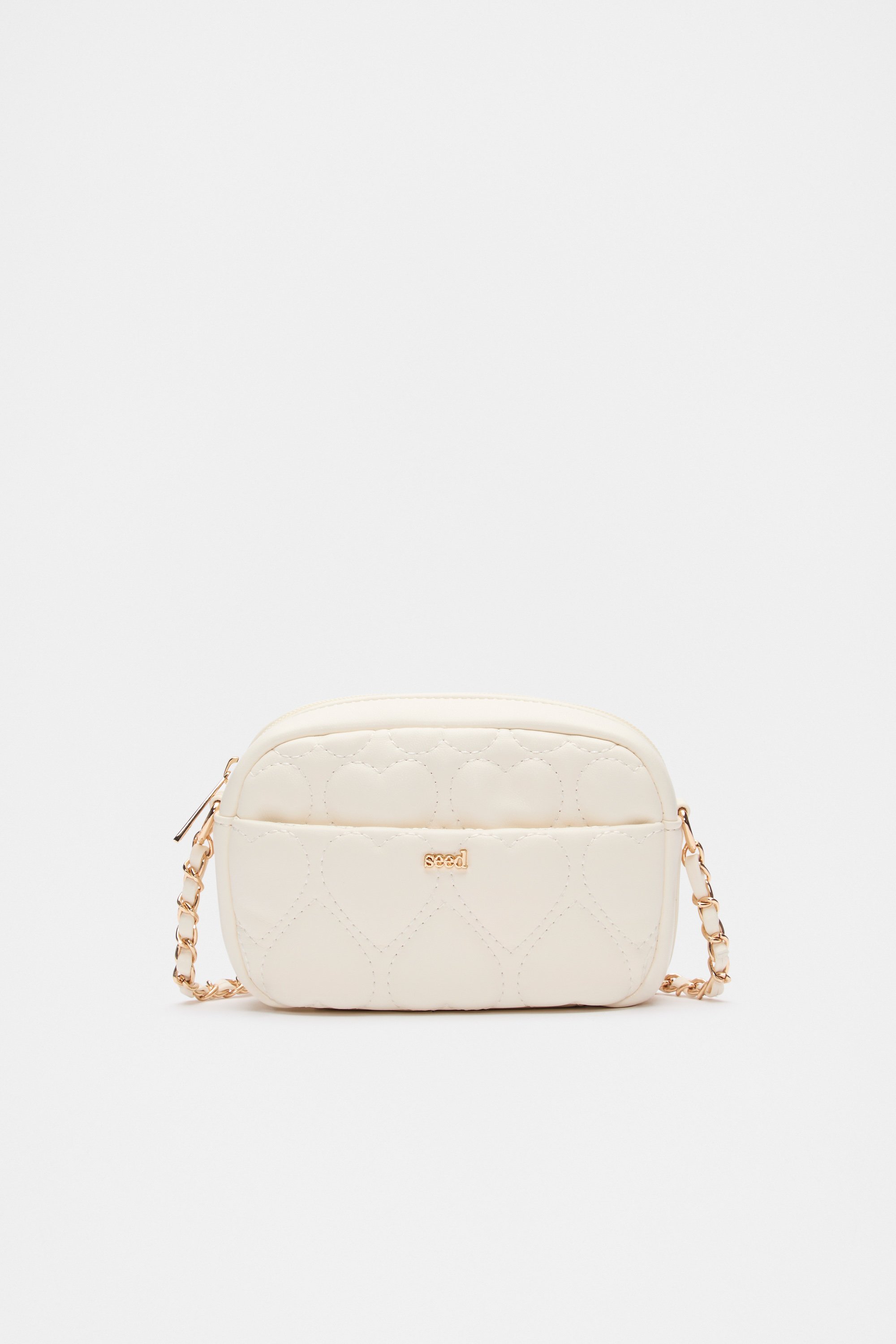 With a charming heart design, this bag is one she'll treasure forever. It features a quilted front, top zip closures, a front pocket, a Seed logo detail and a gold-look crossbody chain.