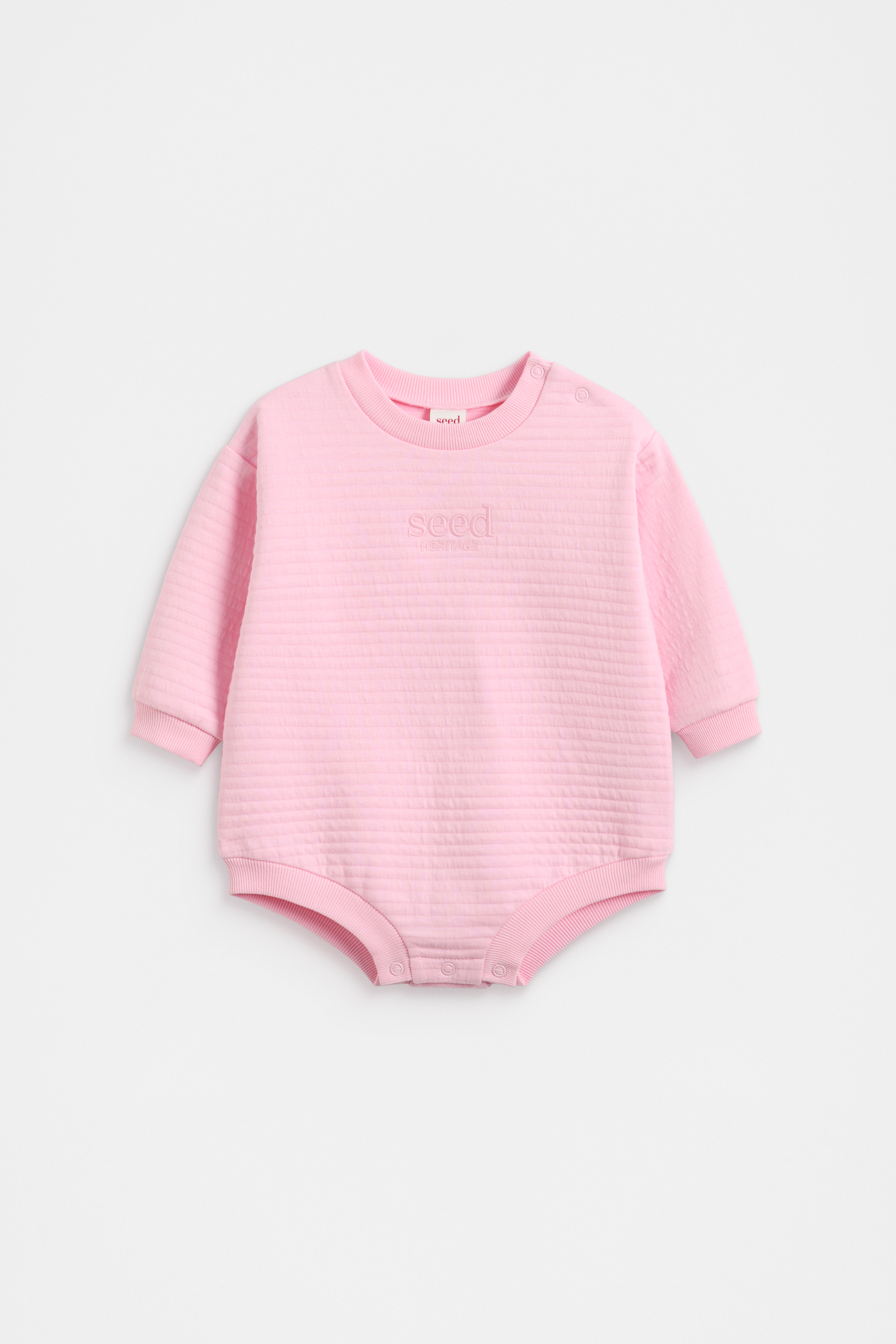 Cosy and sweet, this romper is set to make your little love cuddlier than ever. Crafted in a premium cotton with a quilted finish, it features a round neck, long sleeves, and elasticated leg openings. Pair with the coordinating quilted pants for the sweetest matching moment, or for the perfect gift.