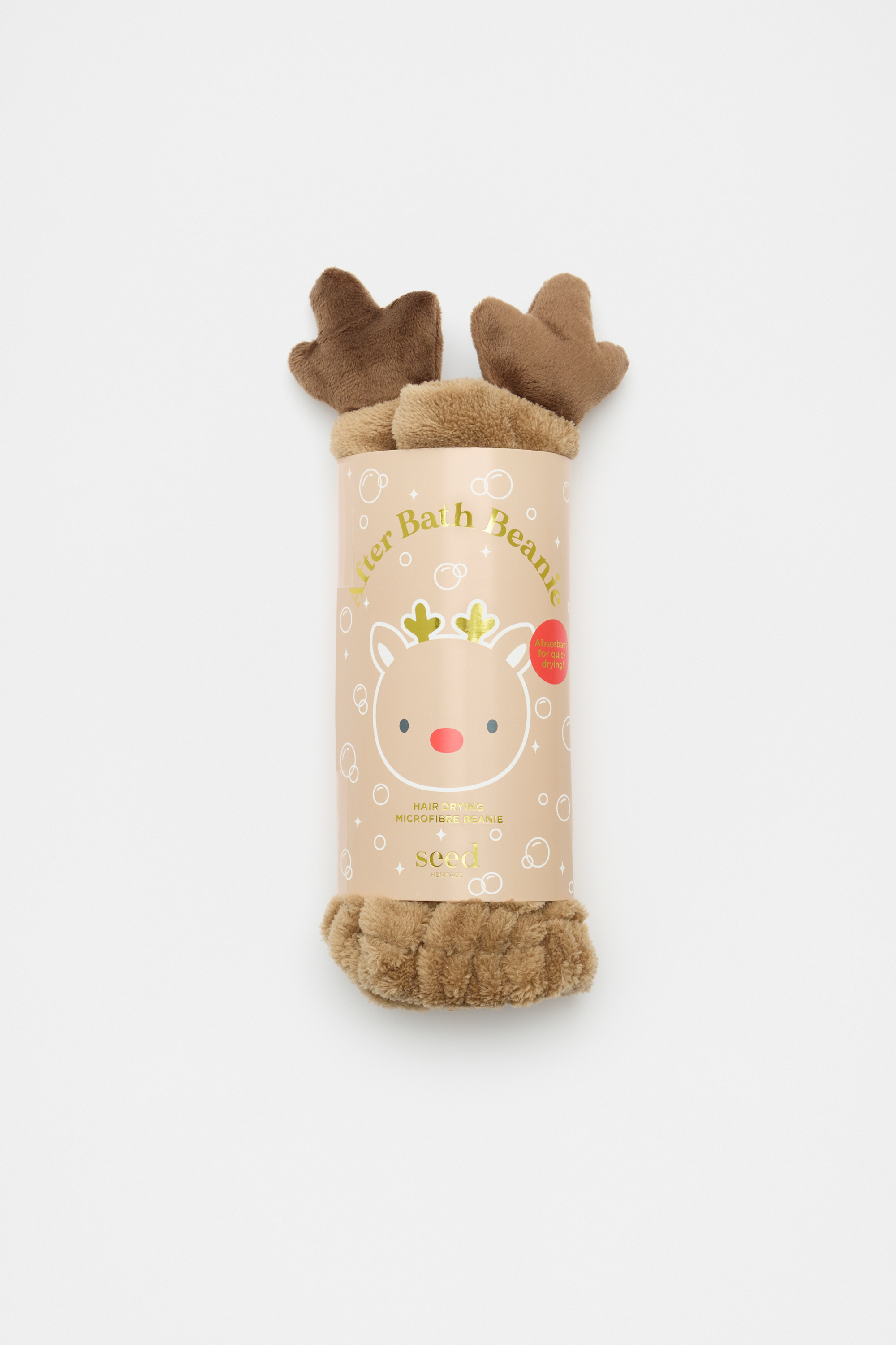 With a festive reindeer design, this after-bath wrap helps to dry hair and keep wet hair from dripping clothes. Crafted in a soft microfibre blend. This product is not a toy and is not suitable for children three years and under.