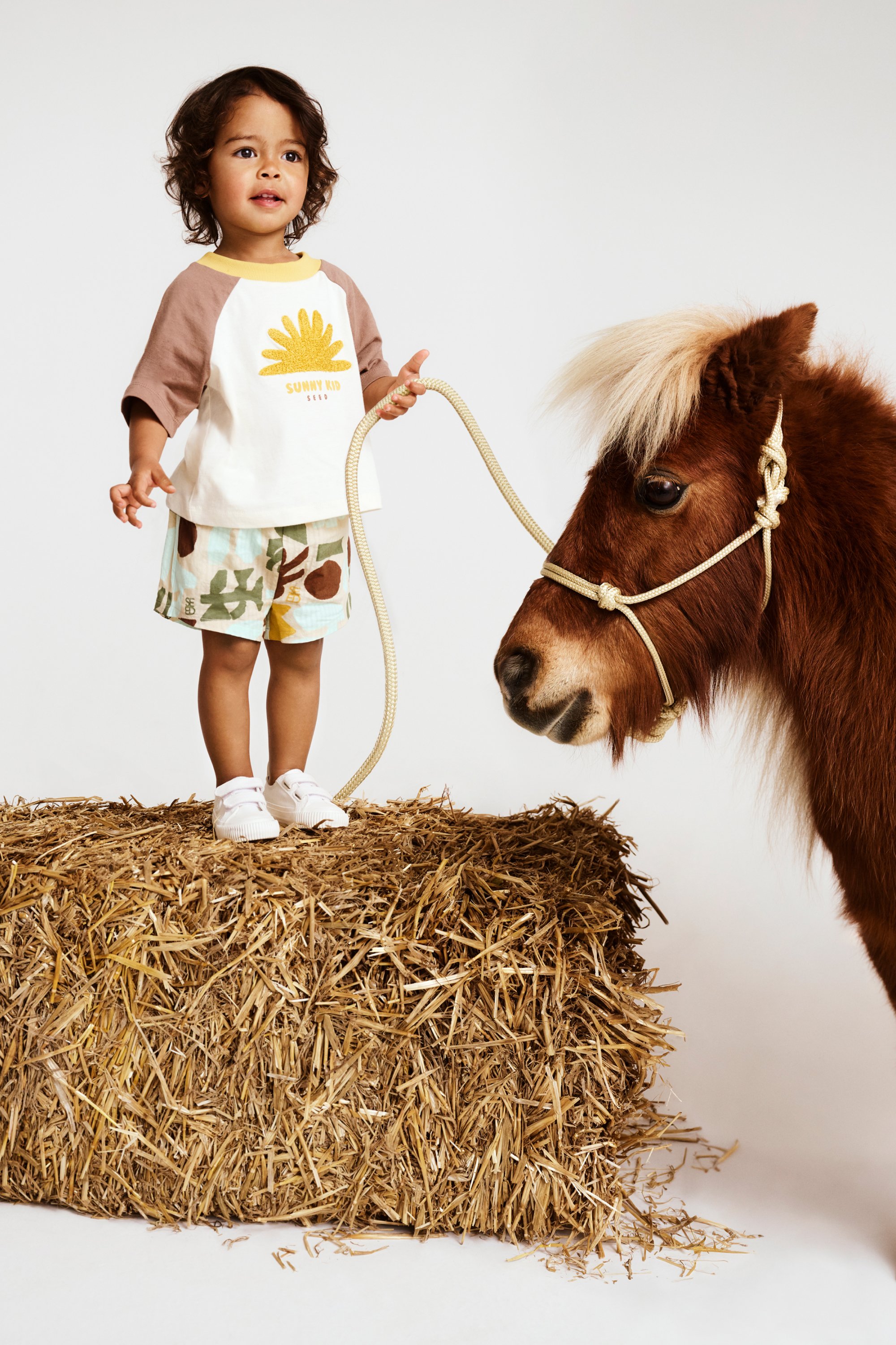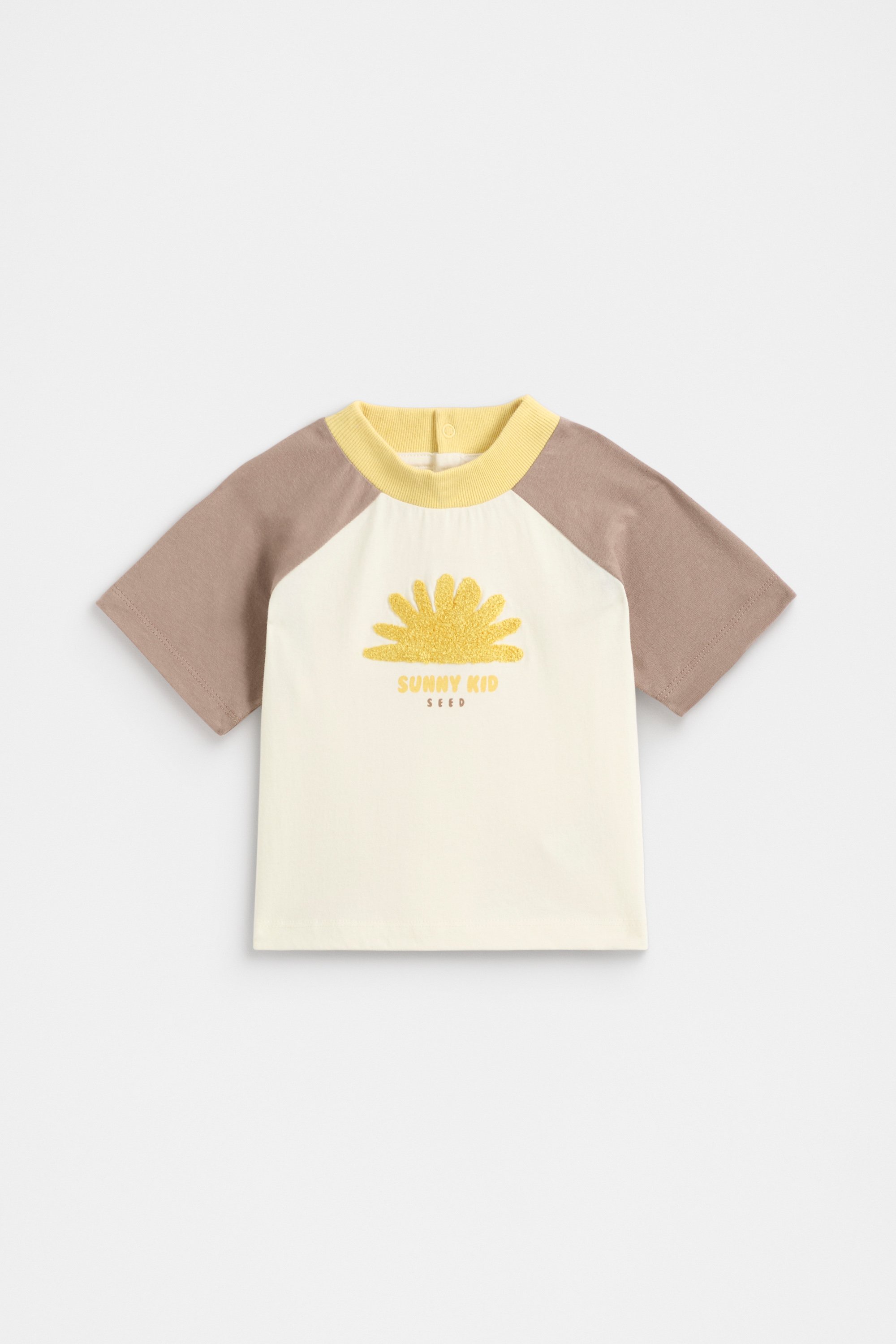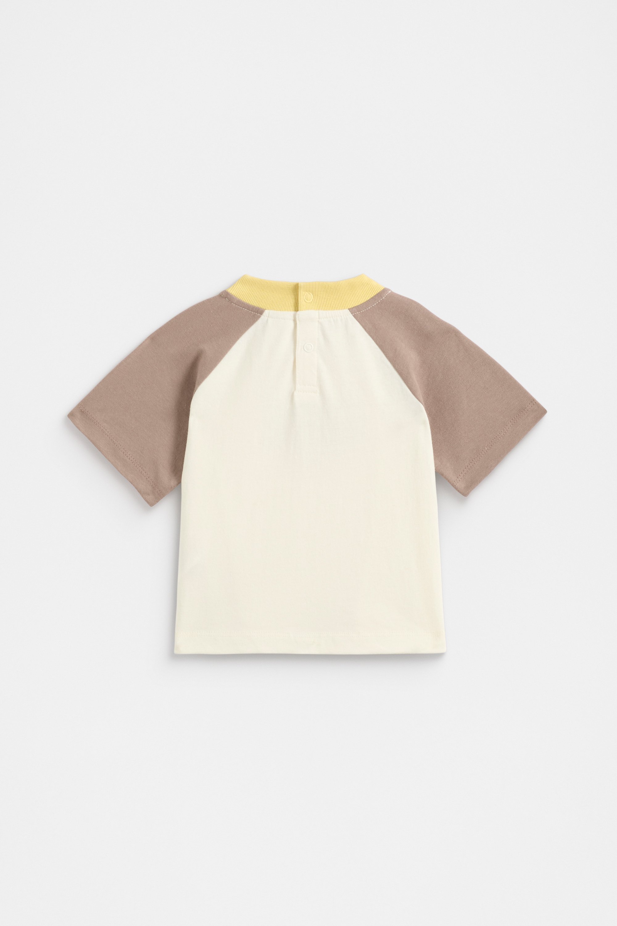 Comfortable and cute, this tee features an embroidered chenille patch design and has a retro feel. Crafted in premium cotton, it features a round neck, short raglan sleeves and a relaxed fit through the body. Secures with snaps at the back of the neck.