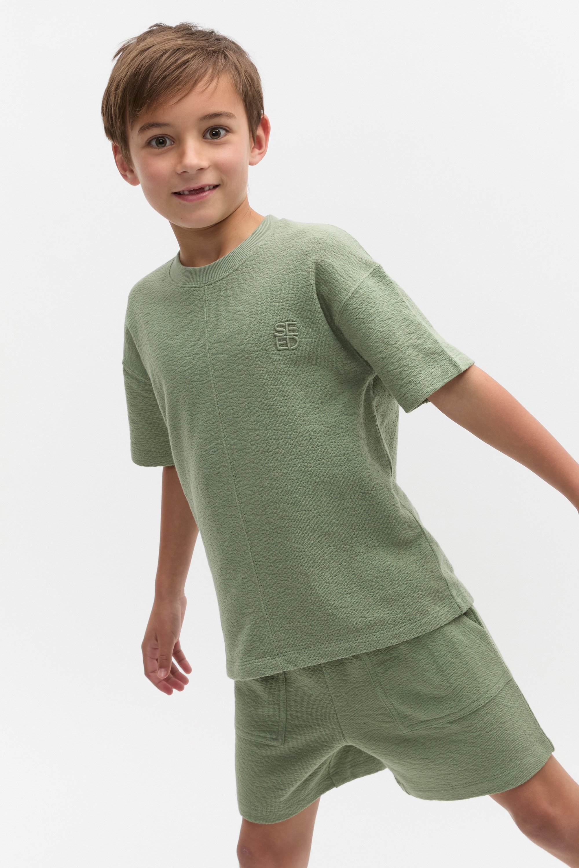 Sporty and comfortable, this is a tee he'll wear again and again. Crafted in premium cotton, it has a textured finish and features a round neck, short sleeves and a relaxed fit through the body.