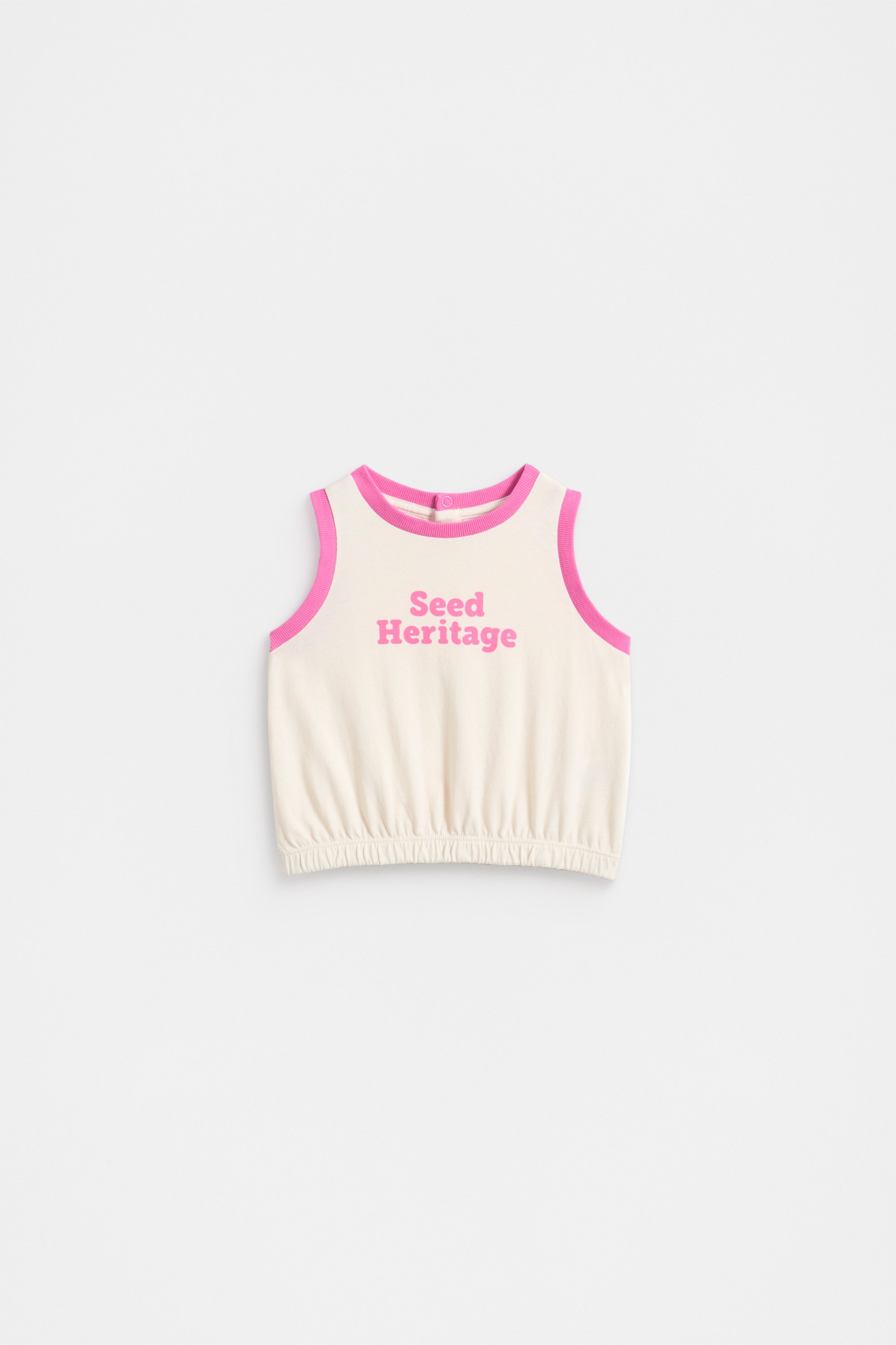 Perfect for warm sunny days, this tank features a retro Seed Heritage logo design with contrast trims. Crafted in premium cotton, it has an elasticated trim and fastens at the back of the neck with snap buttons.