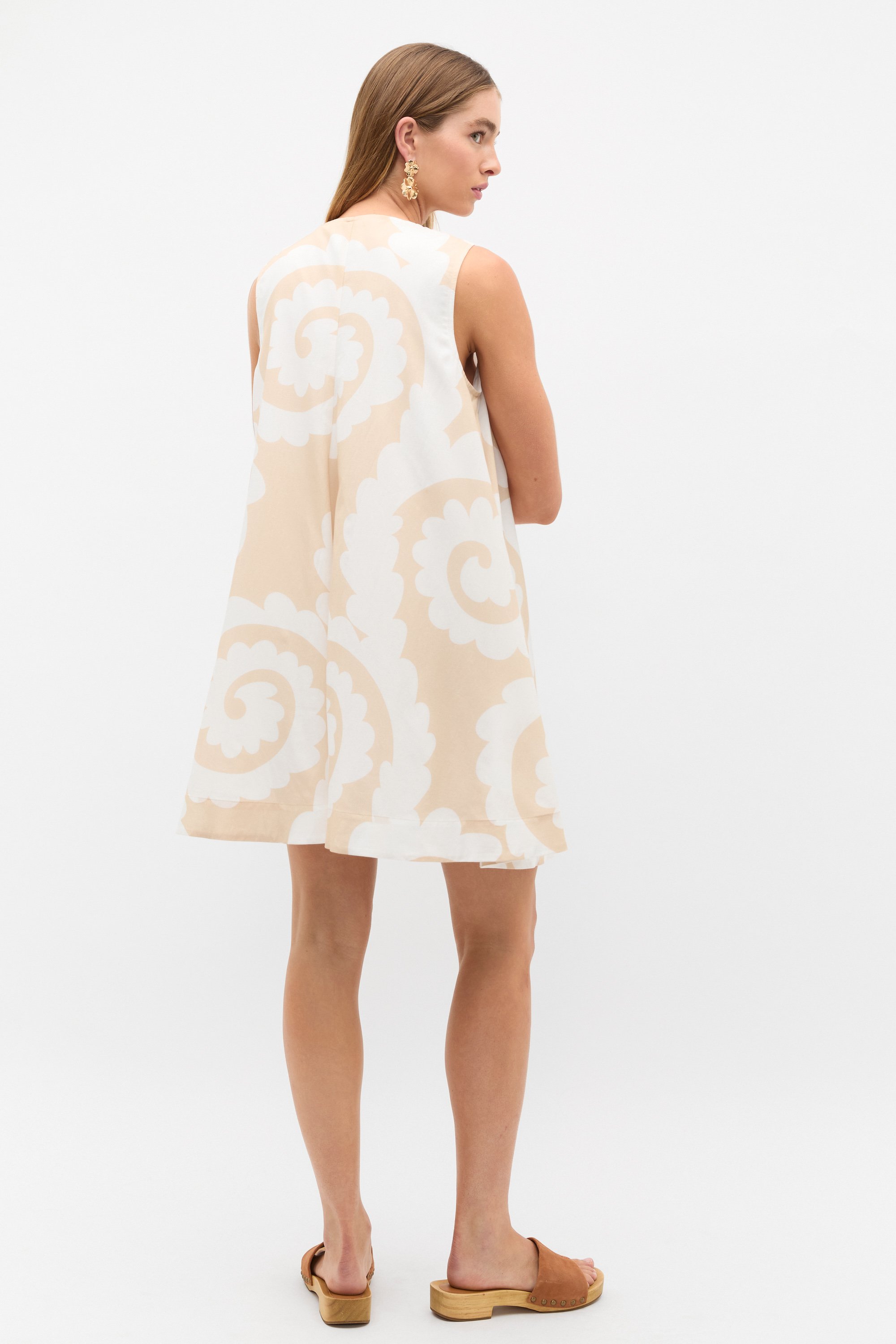 This chic mini dress heroes our new summer print: the retro swirl. Crafted in a lightweight blend and perfect for your casual wardrobe, it's a sleeveless style and features a scoop neck, and an A line shape falling to a mini length.