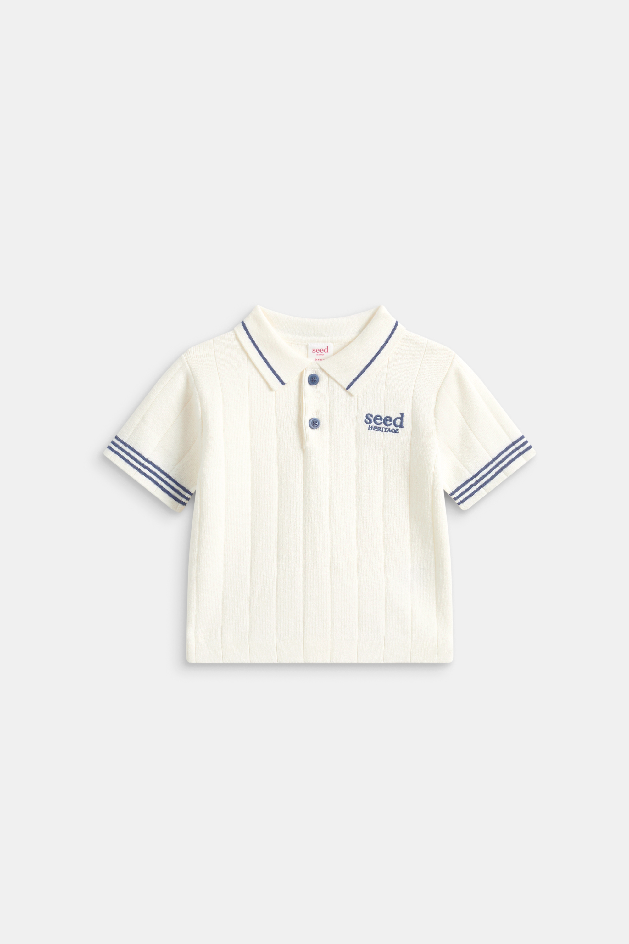 Adorably handsome, this smart little polo is perfect for your next family get-together. Crafted in premium cotton with a soft knit finish, it features a collar with a button placket, short sleeves with a stripe design and an embroidered Seed Heritage logo.