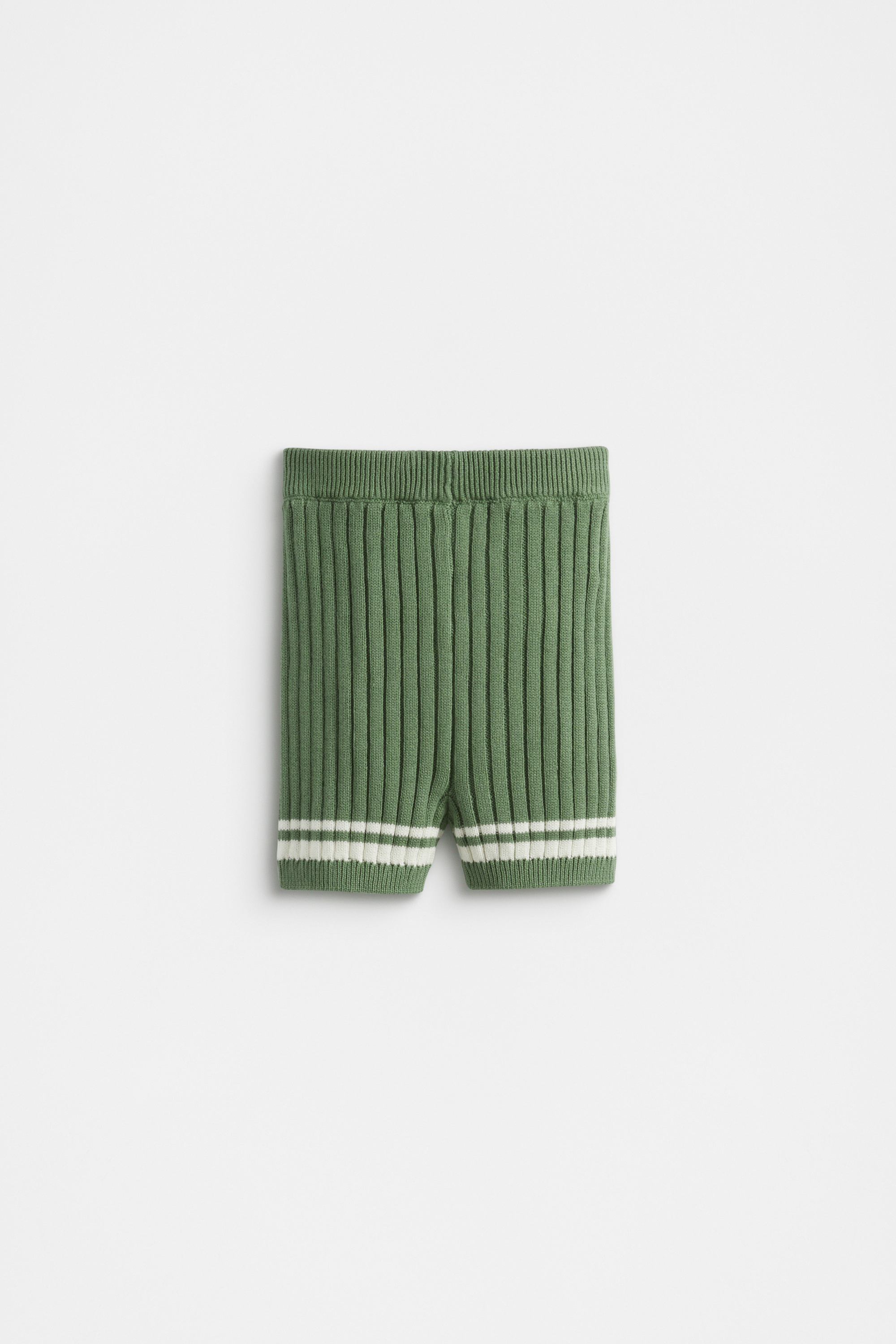 Cute and comfortable, these knit shorts are perfect for any little wardrobe. They feature an elasticated waistband, a stripe detail at the hem, and a ribbed texture with contrasting ribbed trims. Crafted from cotton, they can be paired with the matching knit jumper and blanket for a sweet set.