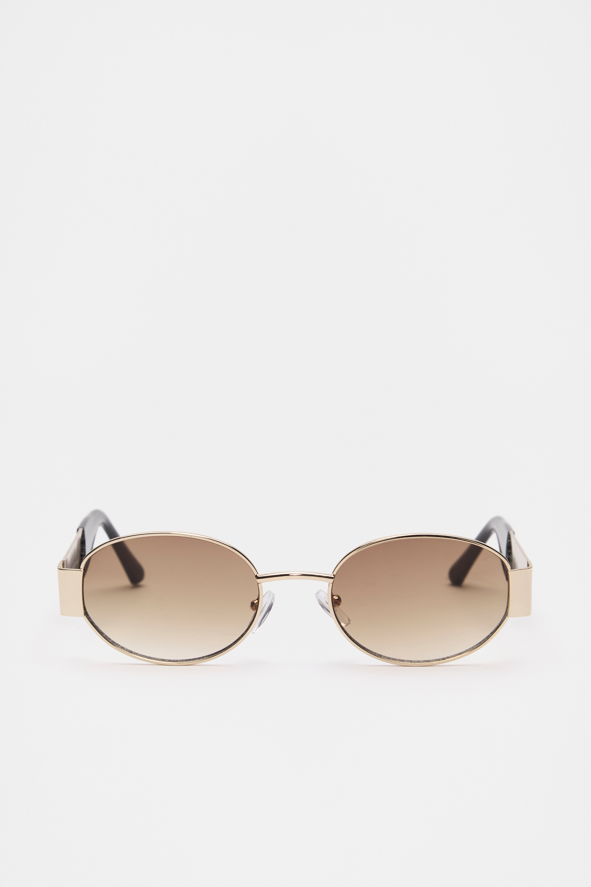 Inject a retro feel into your outfit with these sunglasses, featuring a gold-look frame, a wearable oval shape, and tinted lenses. The lenses comply with the mandatory requirements for the Australian and New Zealand standards ranging between Category 2 and Category 3 protection, see below for further detail.