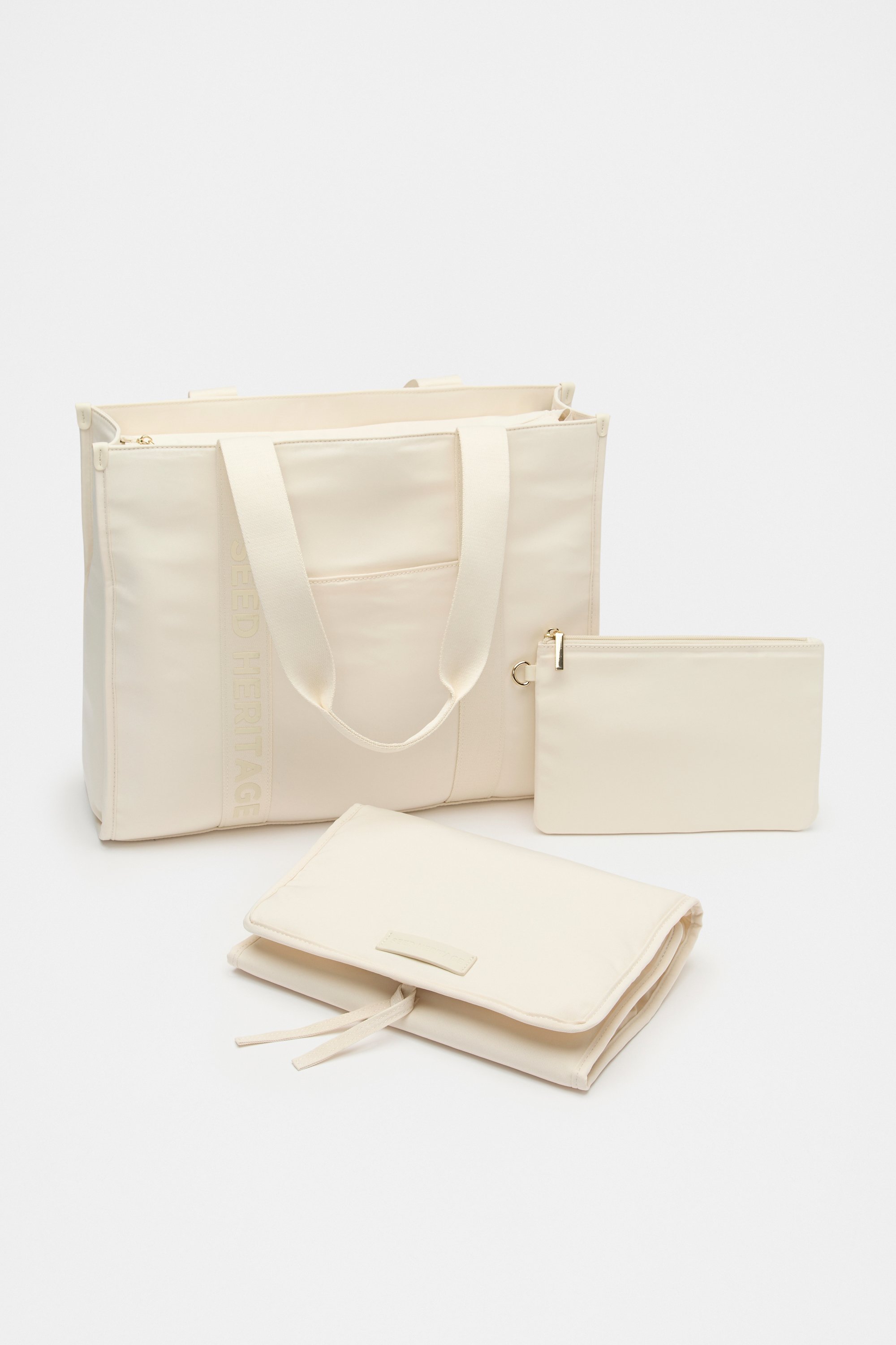 In an easy-to-clean fabric with shoulder straps, a top zip closure, and loops for attaching to your pram, this baby bag has it all. It features a removable change mat, an internal insulated bottle pocket and a clip for keeping everything organised. It also has internal pockets, and card pockets.