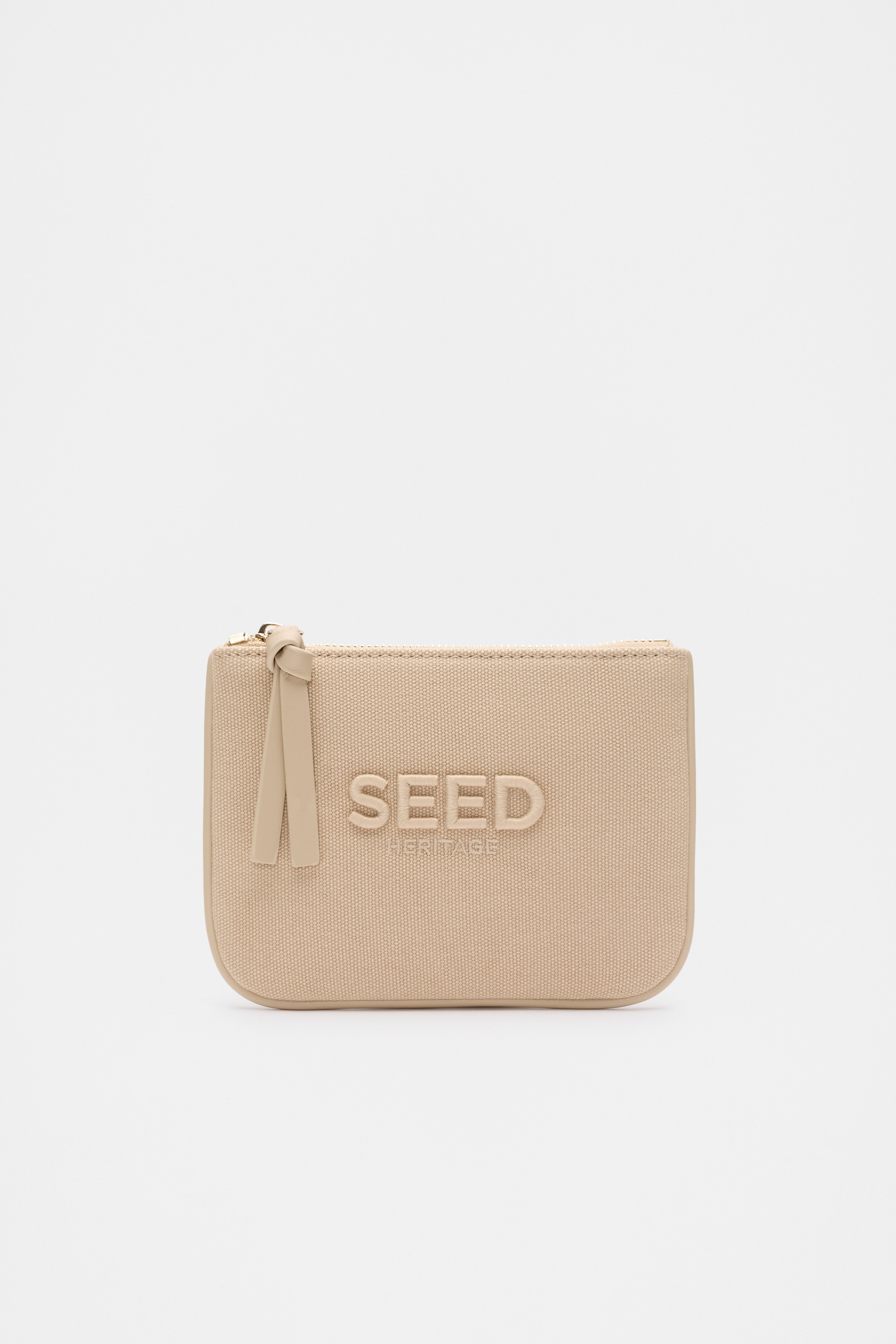 This miniature pouch is a chic addition to any handbag. Crafted in premium cotton, it features a top zip closure and a Seed logo design.