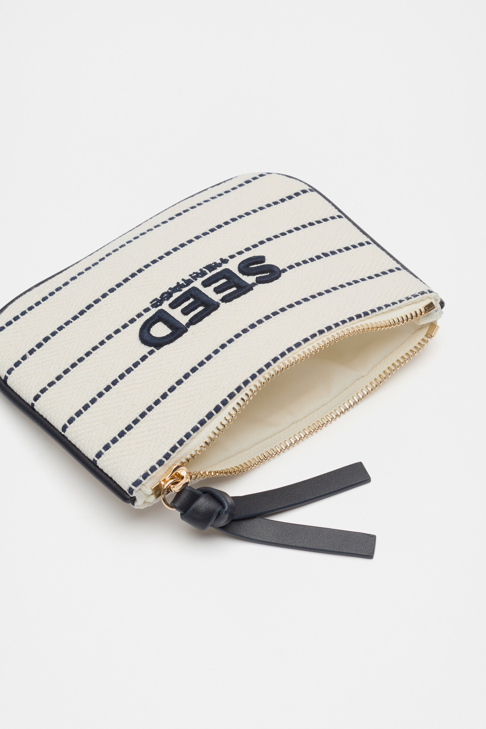 This miniature pouch is a chic addition to any handbag. Crafted in premium cotton with a playfully bright stripe design, it features a top zip closure and a Seed logo design.