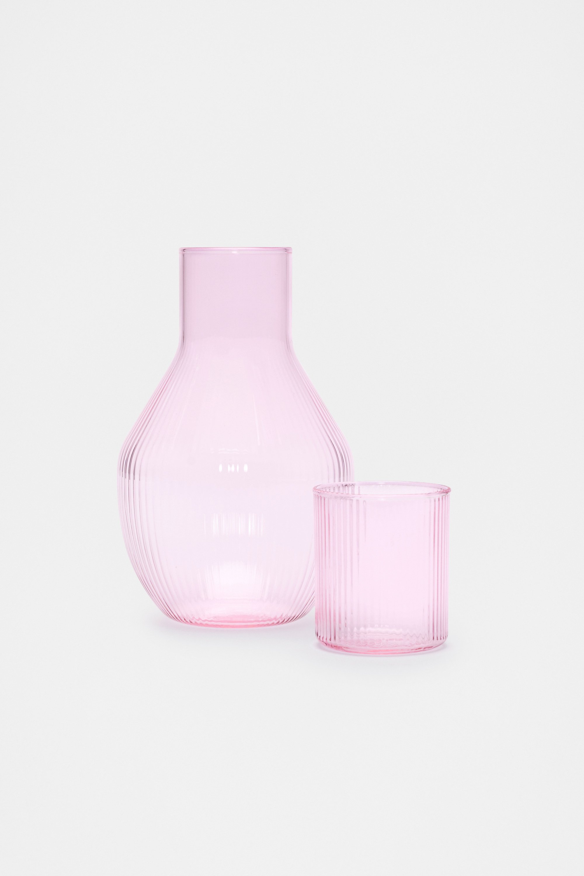 Ideal as an accent piece for a desk or table, this set includes a carafe and a matching glass, making it the perfect gift. In a dynamic shape with a textured ripple design, the set is designed to complement the rest of this season's glassware range.