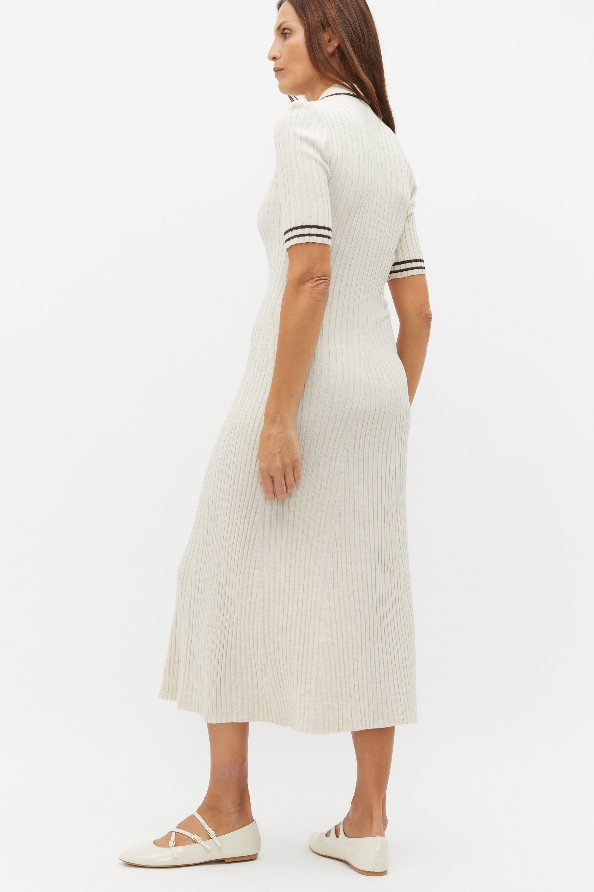 Short Sleeve Knit Tipping Dress  Oat Marle  hi-res