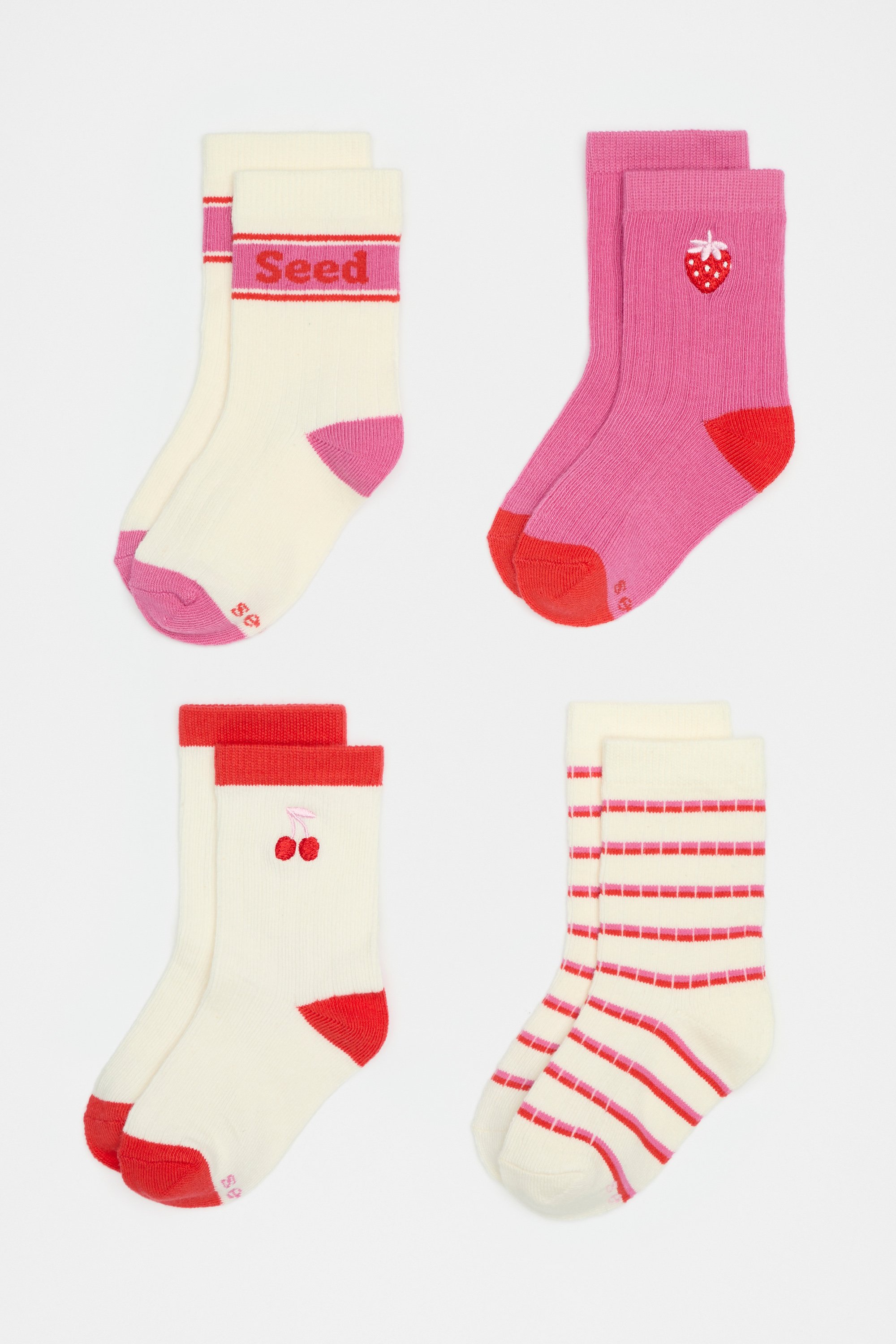 Get them sorted for summer activities with this colourful pack of socks. Designs included stripes, embroidered fruit details and logo designs.