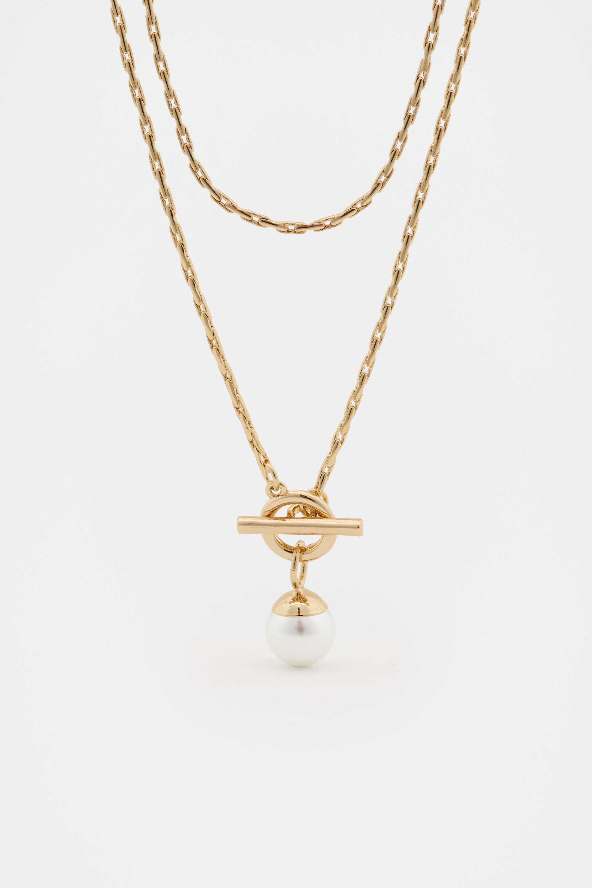 Add a subtle statement to any outfit with this necklace, featuring two classic chains of different length. One chain is a simple design, while the other has a T and O and rounded pendant detail. Wear the chains separately or together, and pair with the matching hoops or studs for a coordinated look.