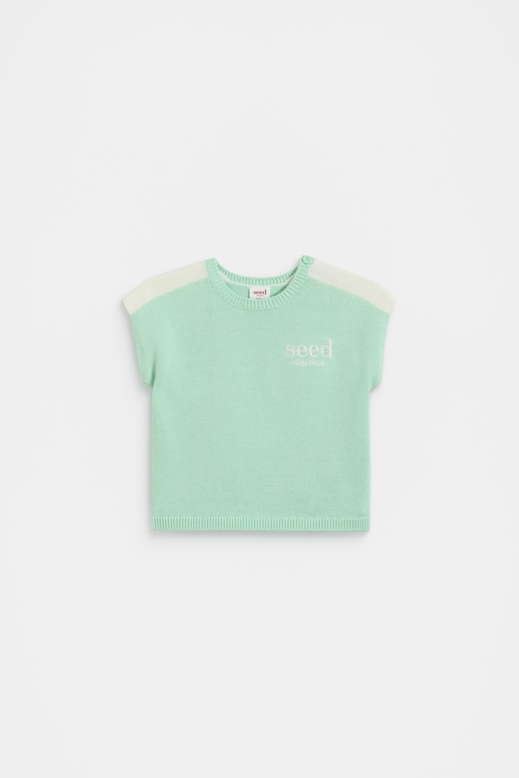 So soft and sweet, this little tee has a knit finish and a colour-splice design to guarantee cuteness. Crafted in premium cotton, it features a round neck, short sleeves, an embroidered Seed Heritage logo and a shoulder button for ease and convenience when changing. Pair with the matching knit shorts for the cutest head-to-toe set, or for the perfect gift.