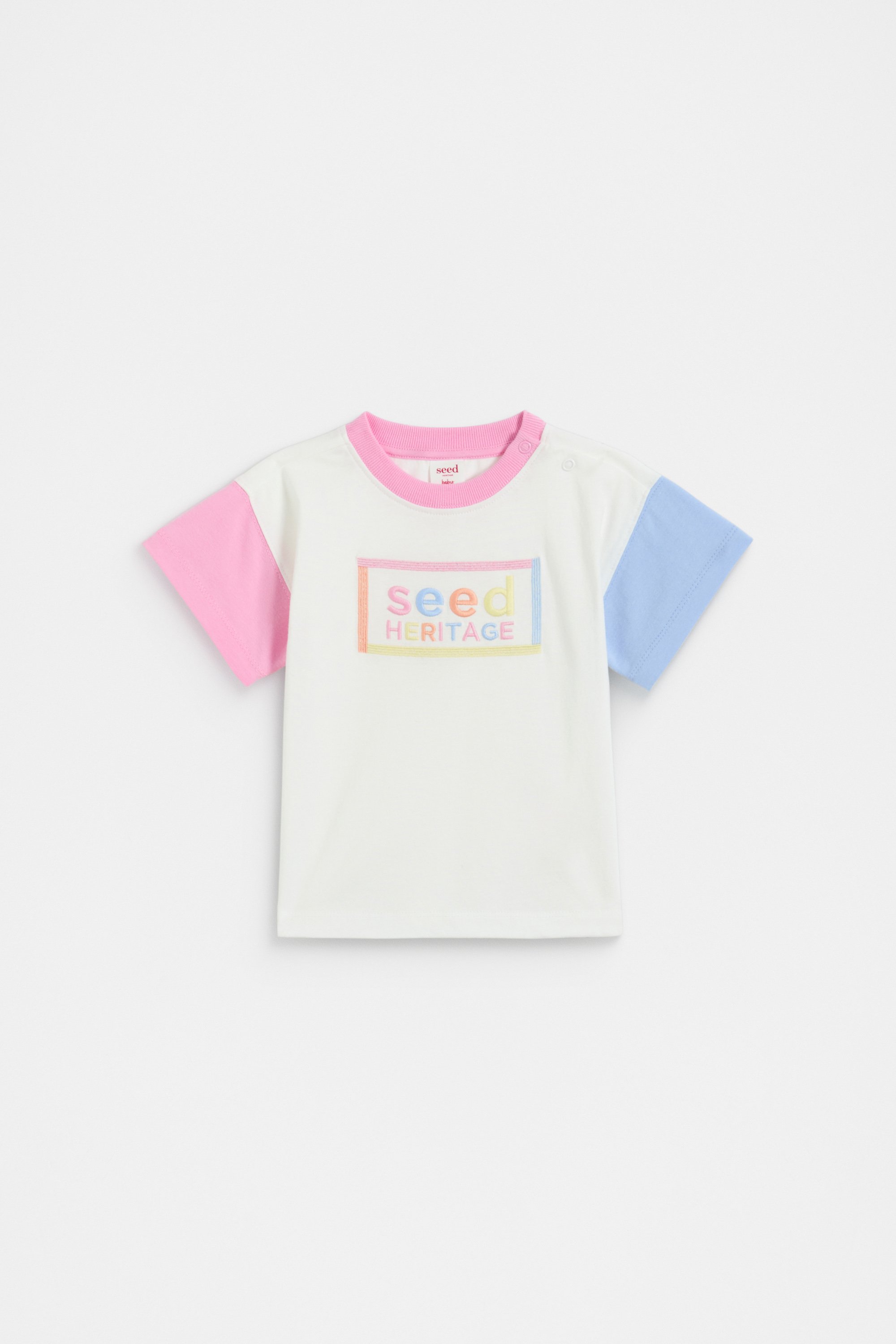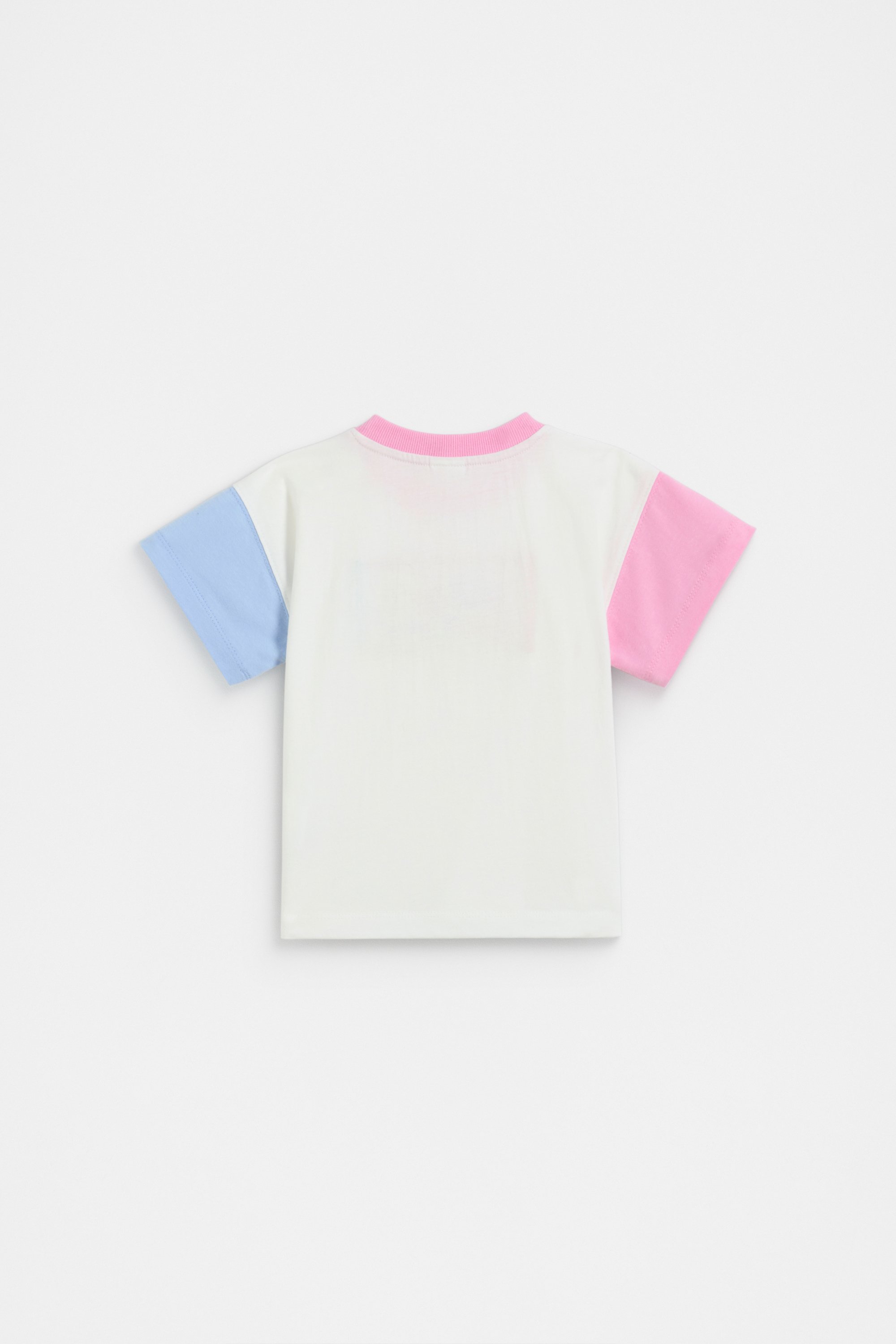 Soft and sweet, this little tee is an essential style for easy outfitting. Crafted in a premium cotton, it features a round neck, short sleeves with a spliced design and a relaxed fit through the body.